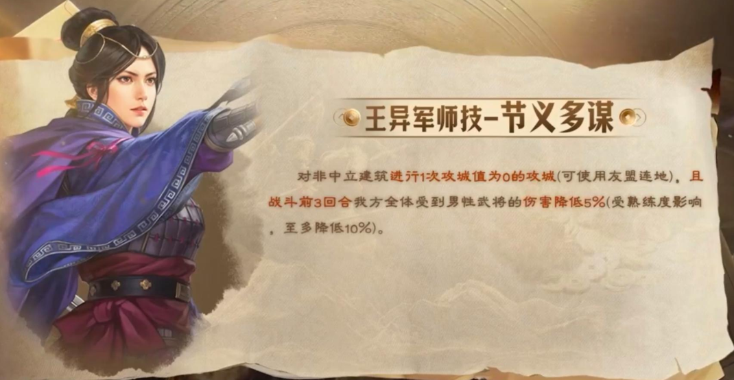 王异军师技帮盟友俘虏人的。就是没有同盟连接地也可以借友盟连接地去打掉驻守的人,本来城下只能单盟冲营帐,现在可以双盟冲了。