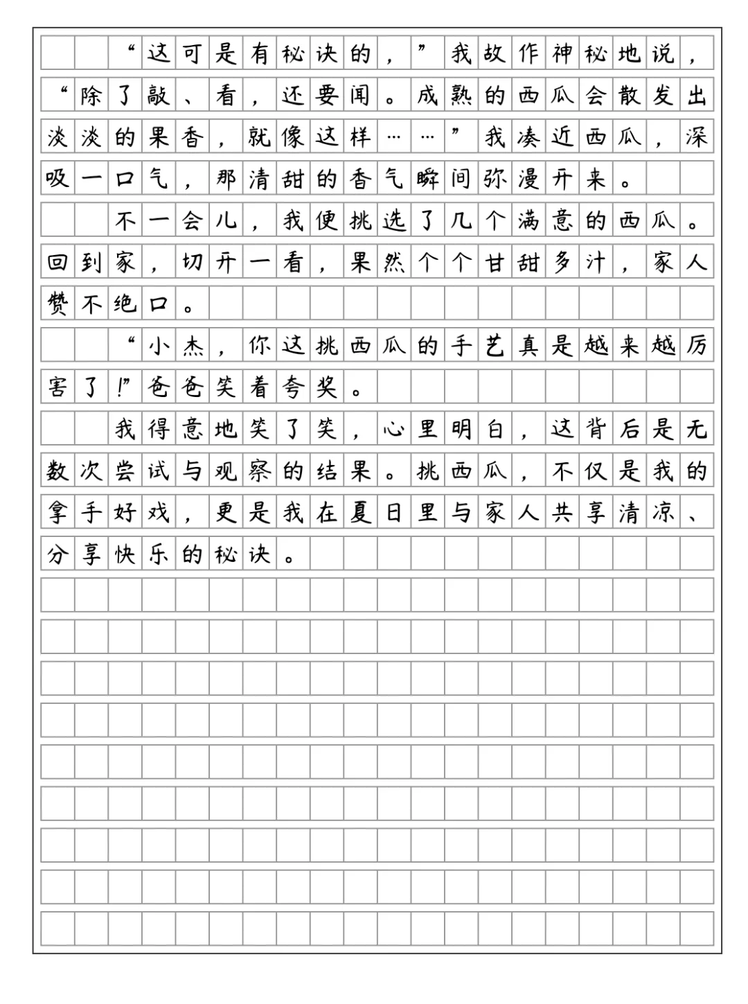 六年级上册第七单元作文,我的拿手好戏——挑西瓜。如何在夏日炎炎的集市上,通过敲打、观察等方法挑选出一个个甘甜多汁的西瓜,这可是我的拿手好戏。