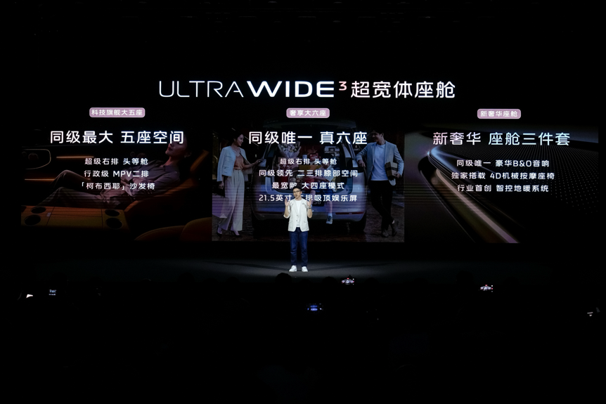 大六座版本则让第三排真正实用,全家出行每一排都宽敞舒适,后备箱可轻松容纳 6 个 28 寸行李箱,再加上中国首搭的 B&O 音响、4D 机械按摩座椅、行业首创智控地暖与 12.3L 双开门冷暖冰箱,把百万级新奢华体验一次性配齐,兼顾家用与豪华感。