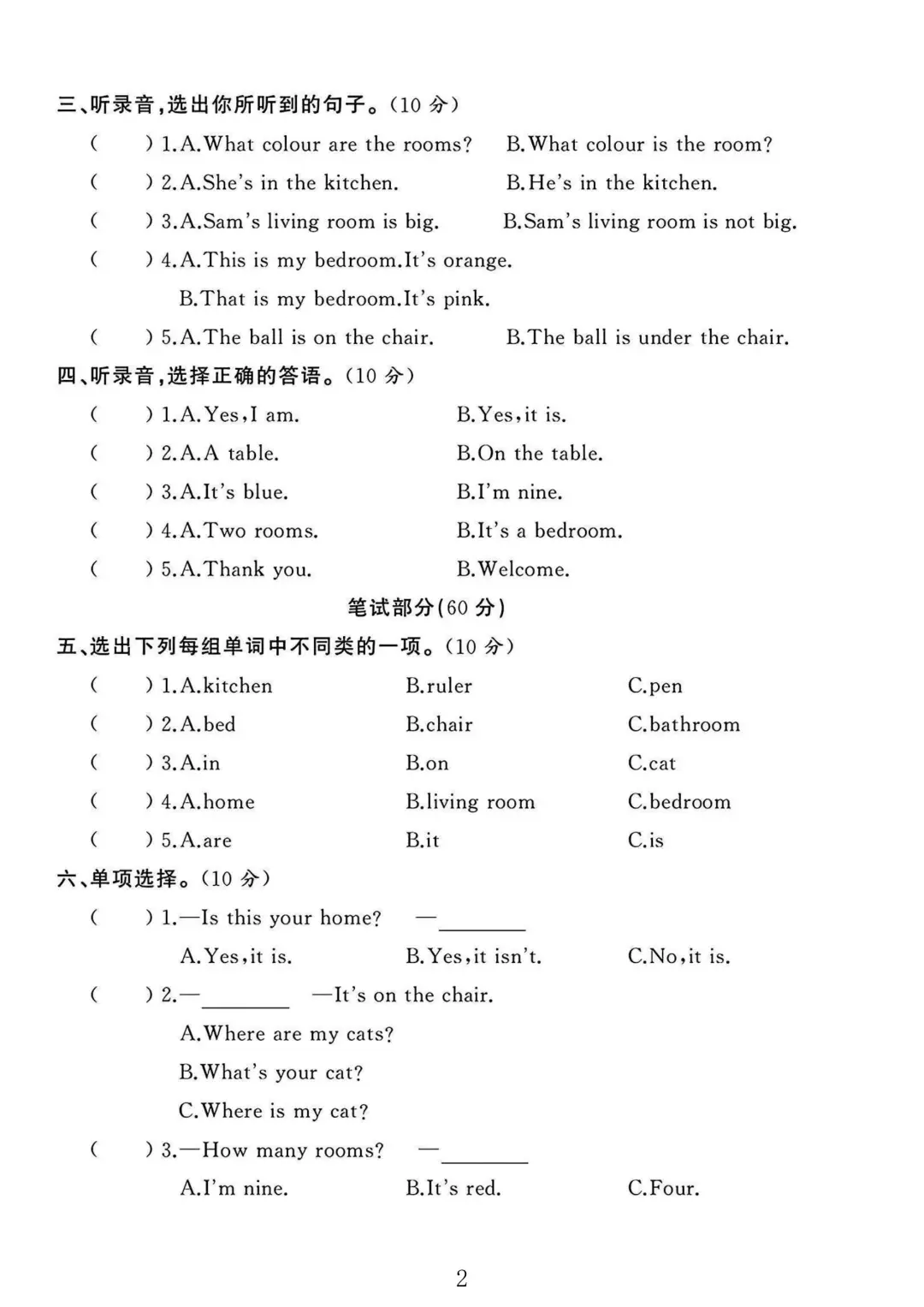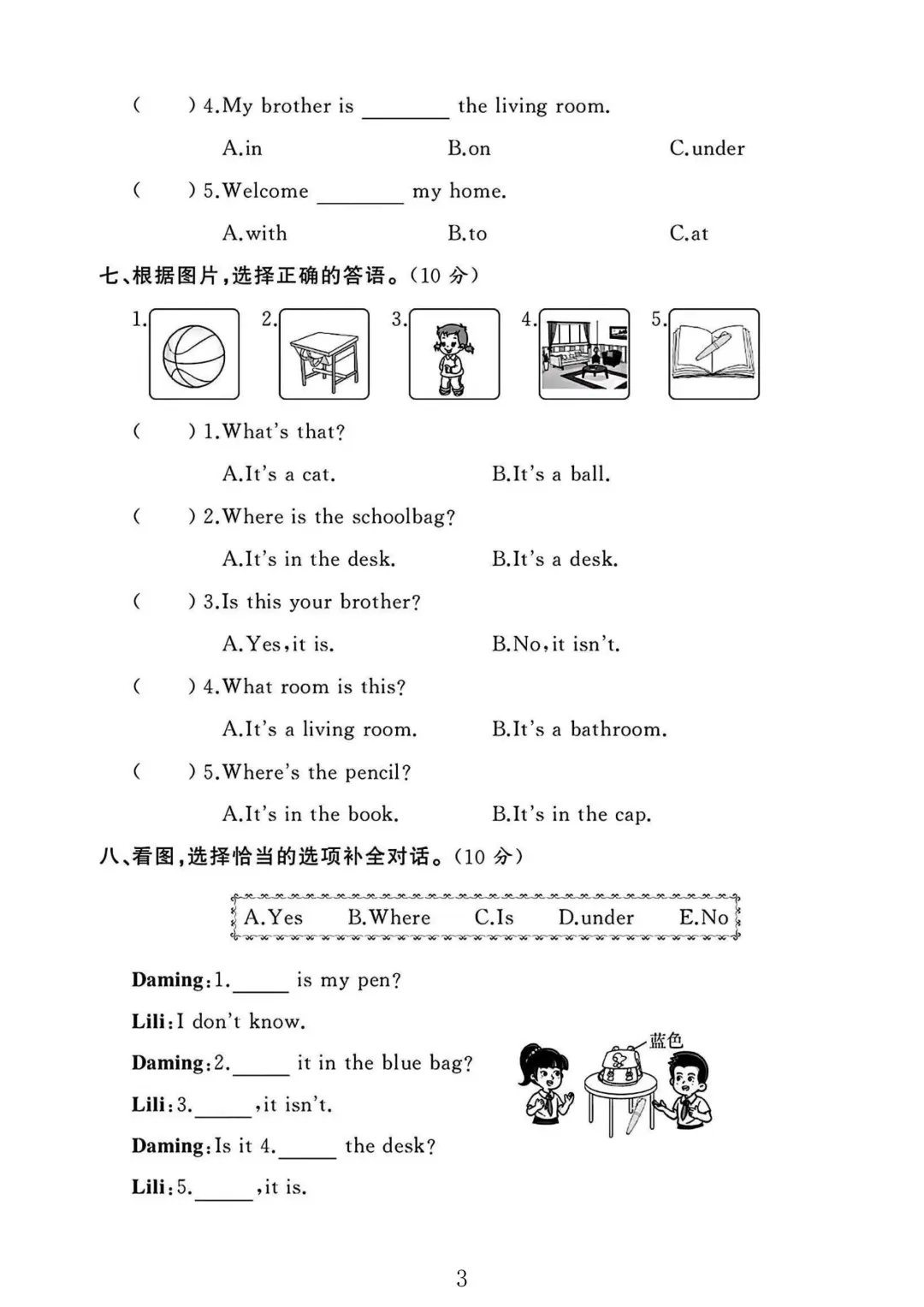 外研版 三年级上册英语 第六单元 测试卷 试卷 单元测试 电子版可打印