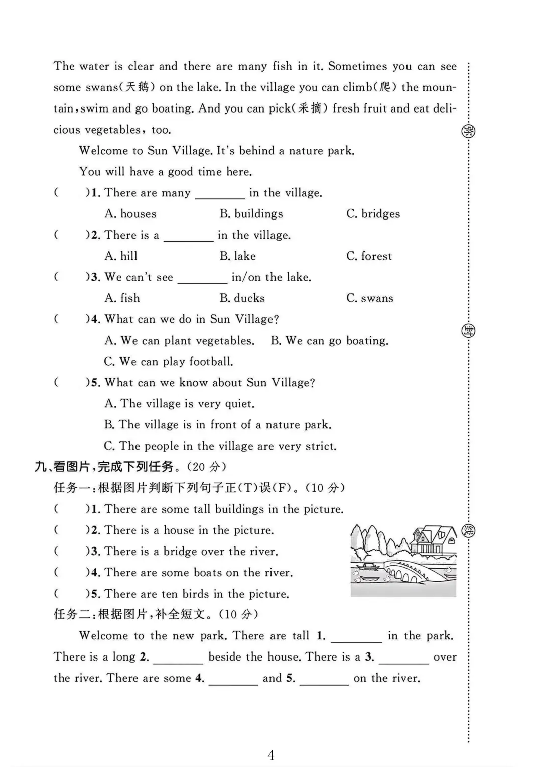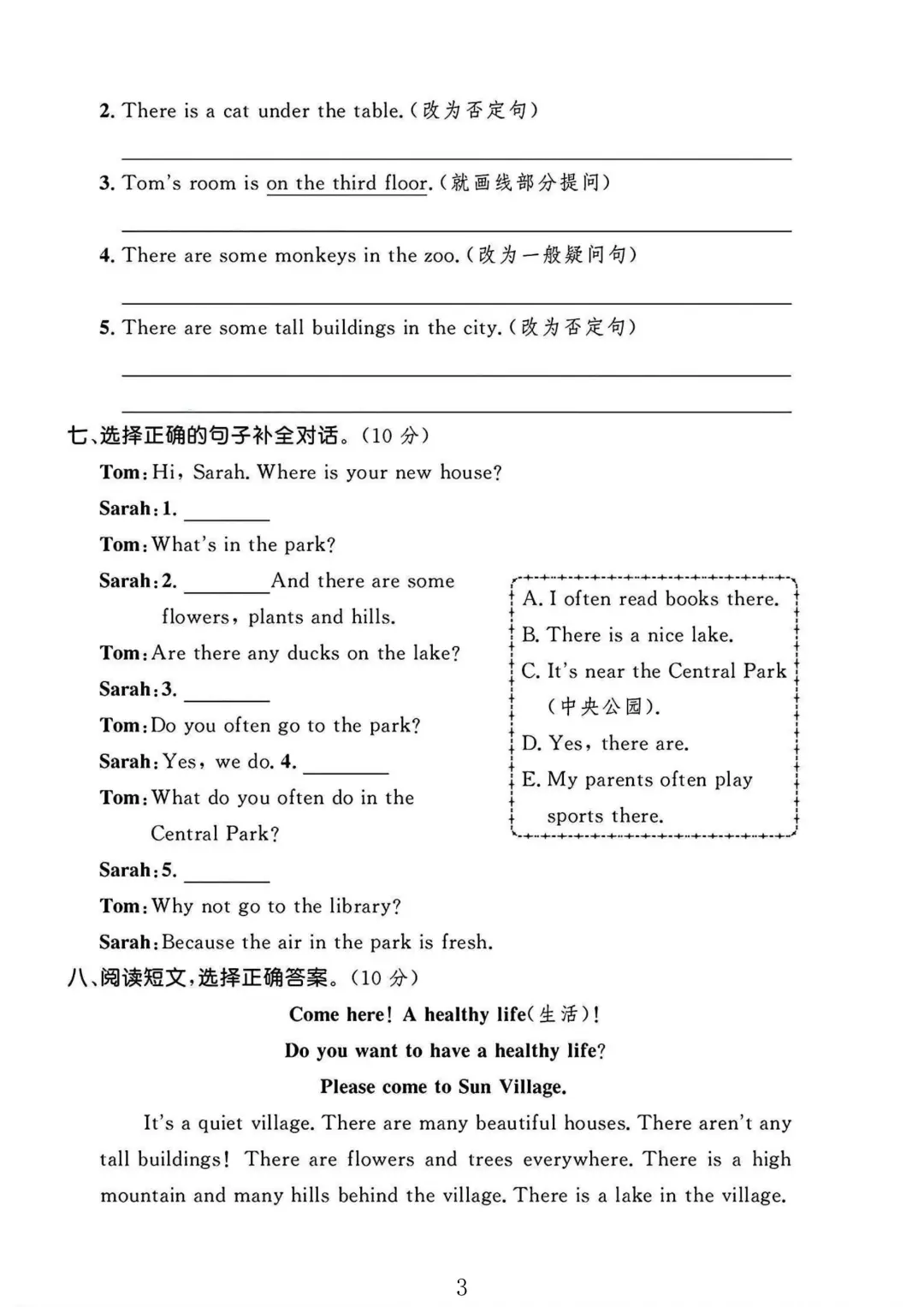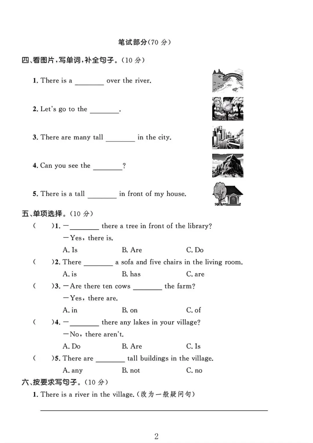 人教版 五年级上册英语 第六单元 试卷 单元测试 电子版可打印