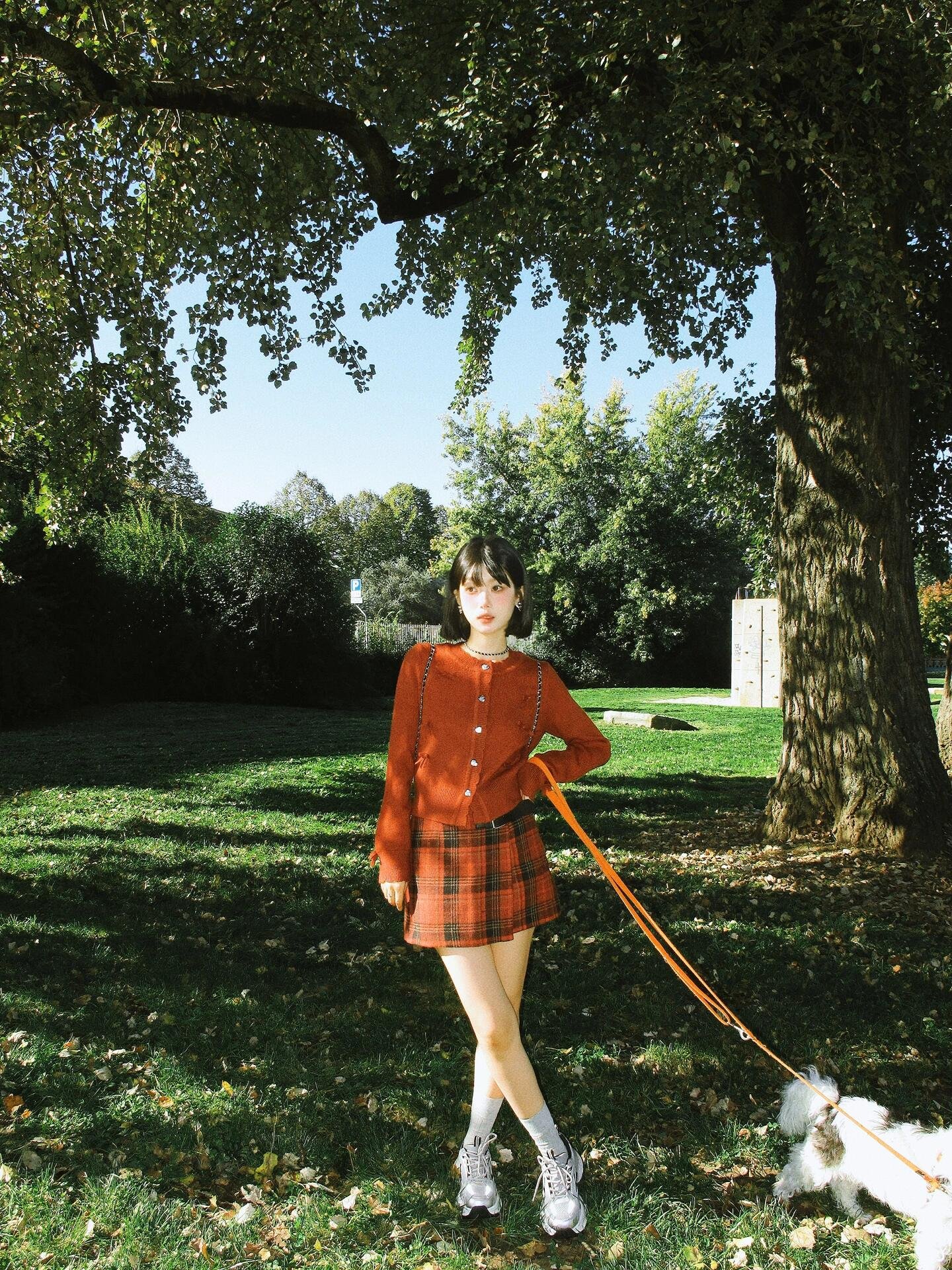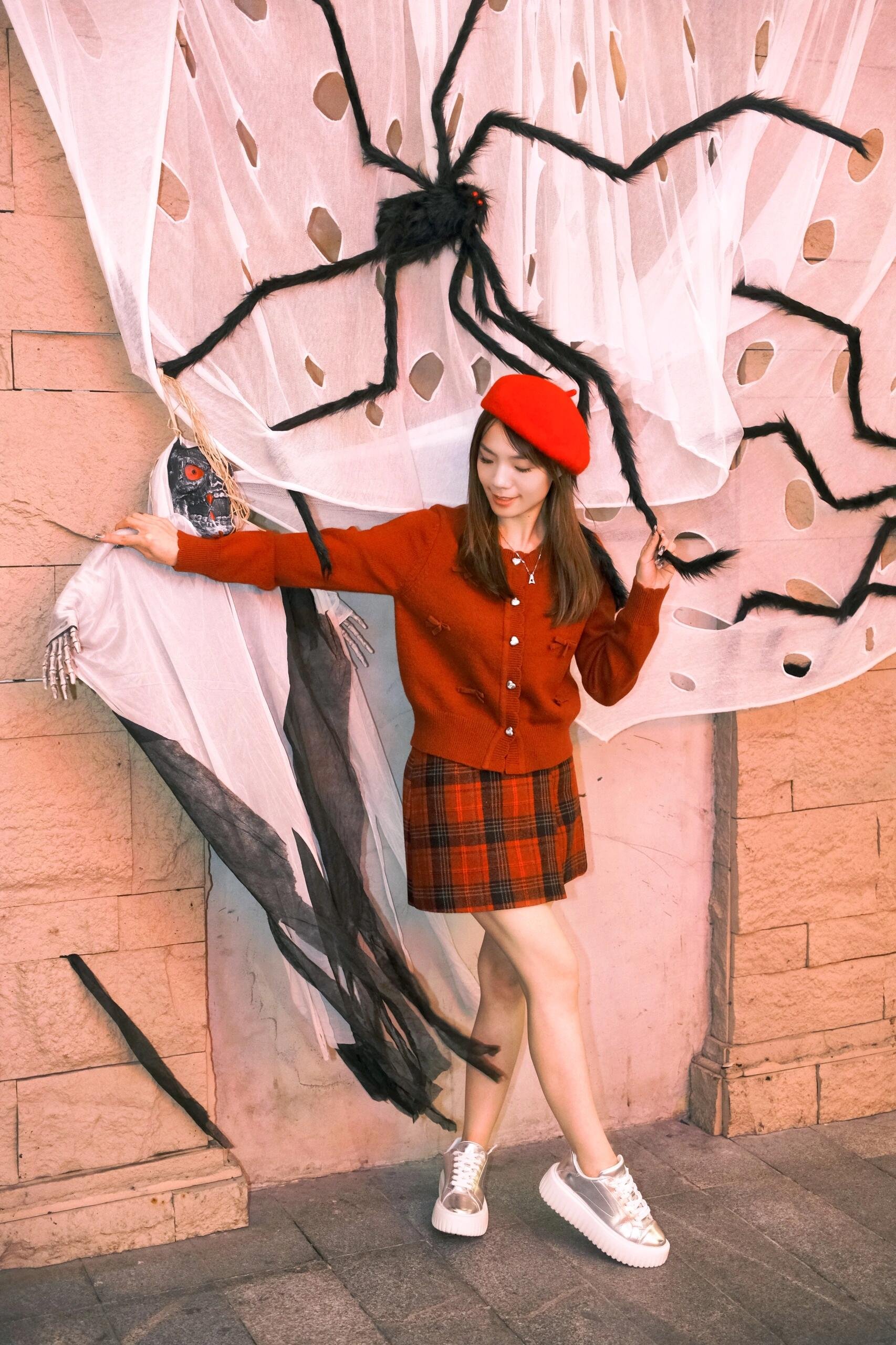 红色针织连衣裙圣诞过年战袍穿搭一整套装女