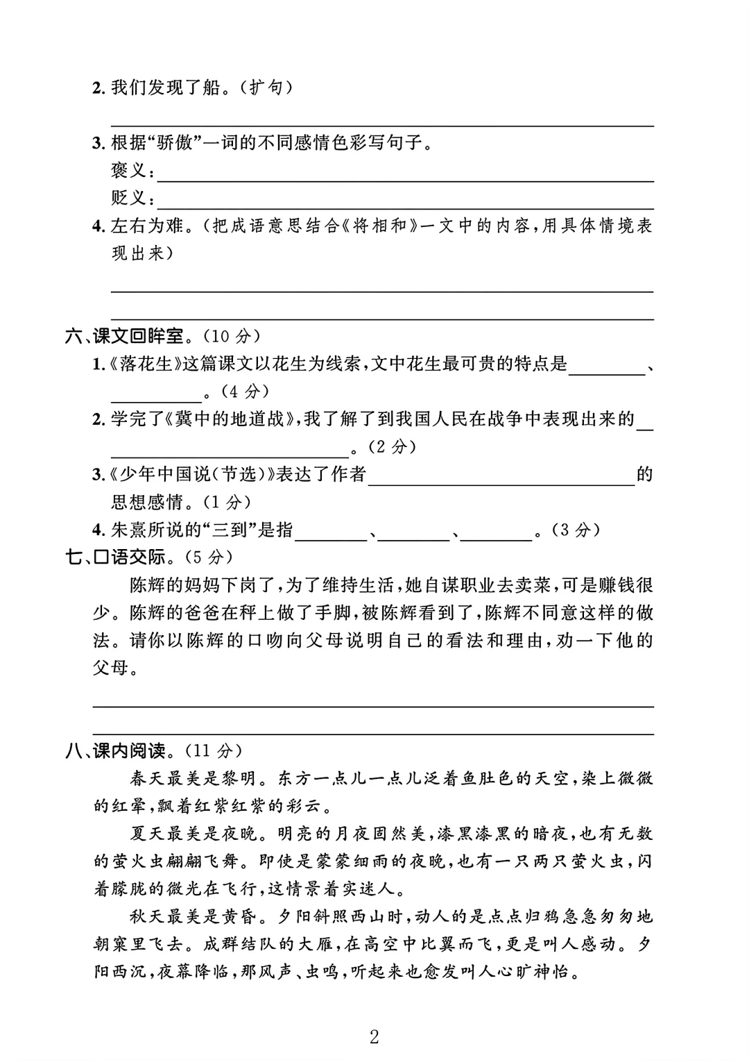 五年级语文上册期末试卷 1