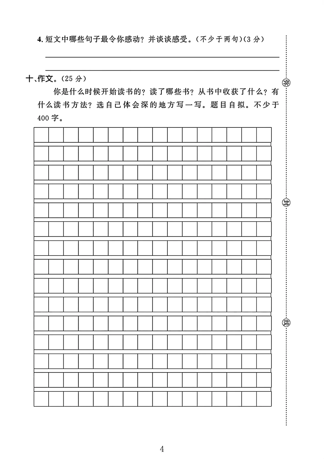 人教版 五年级上册语文 期末考试 期末试卷 期末 试卷 电子版可打印