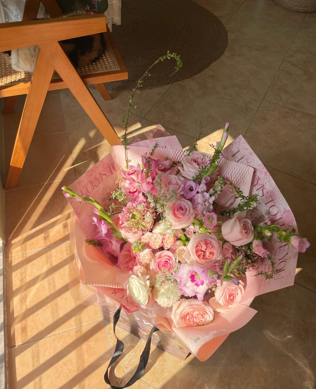 佛山花店 粉色系花束 花店日常 温柔色系花束 阳光下的花 温柔和浪漫都藏在花里 生日花 小众花店 花是抱在怀里的温暖 顺德碧桂园花店