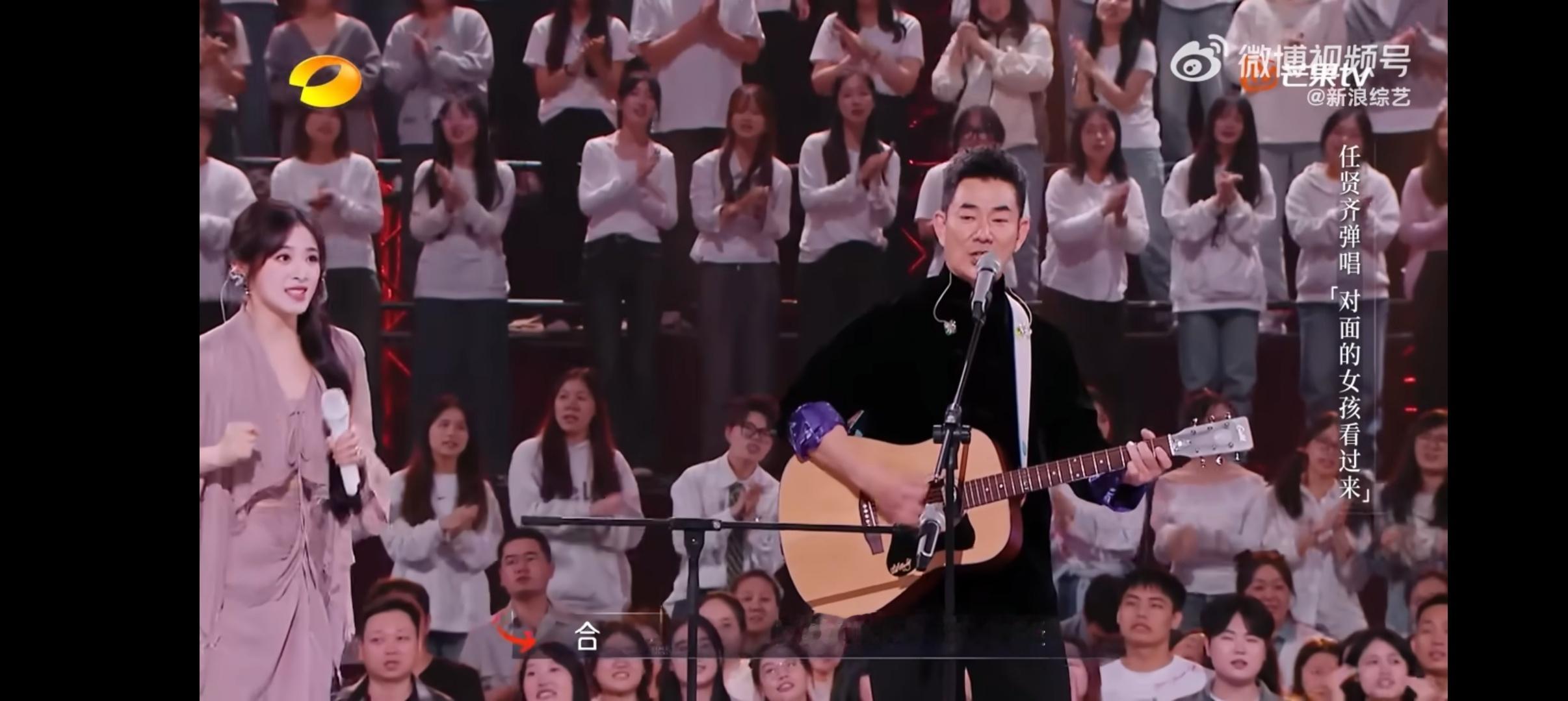 任贤齐给张含韵唱对面的女孩看过来 任贤齐履行“挑战契约”,唱了《对面的女孩看过来》,全场大合唱氛围好好,一起沉浸在音乐的快乐中!