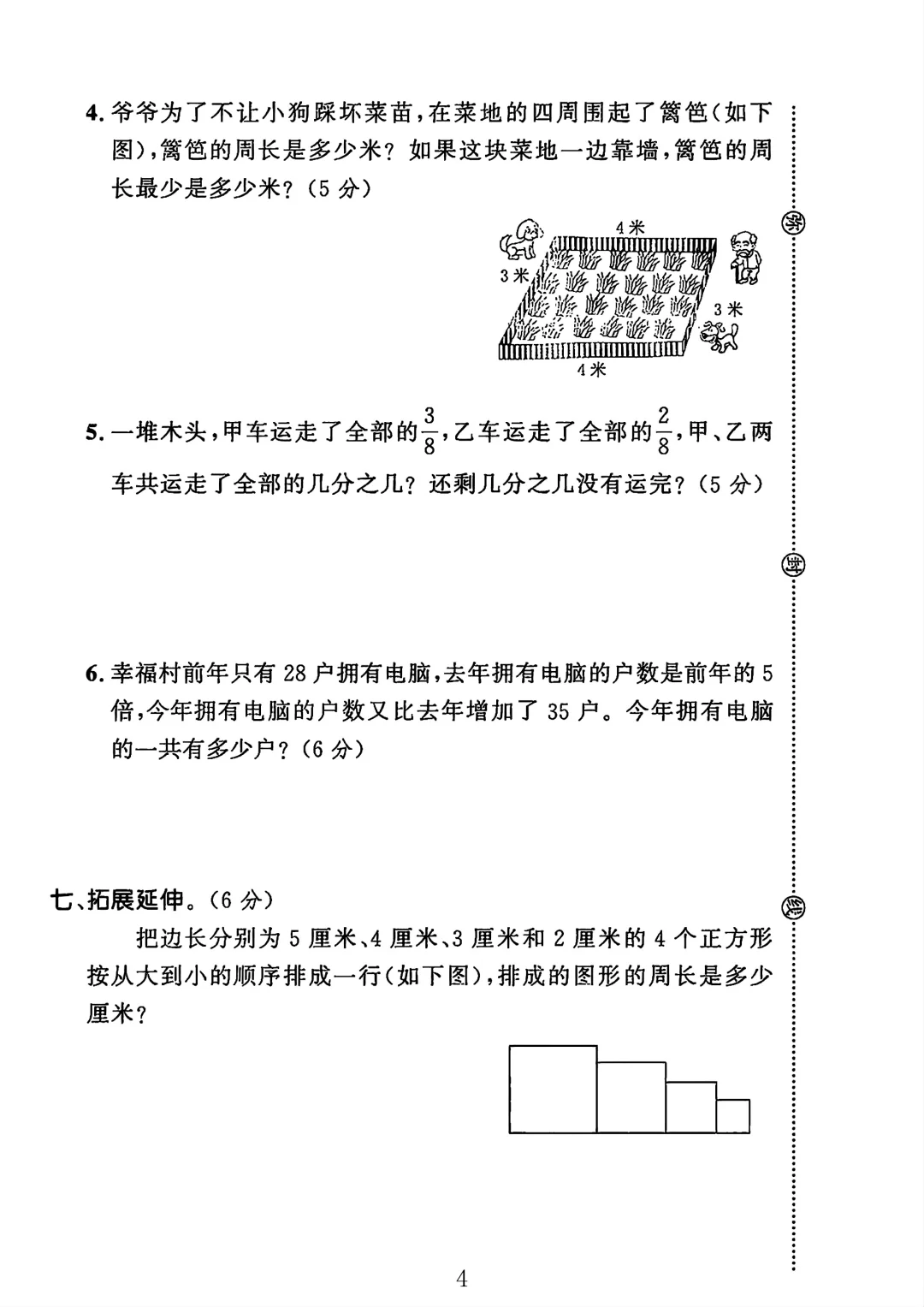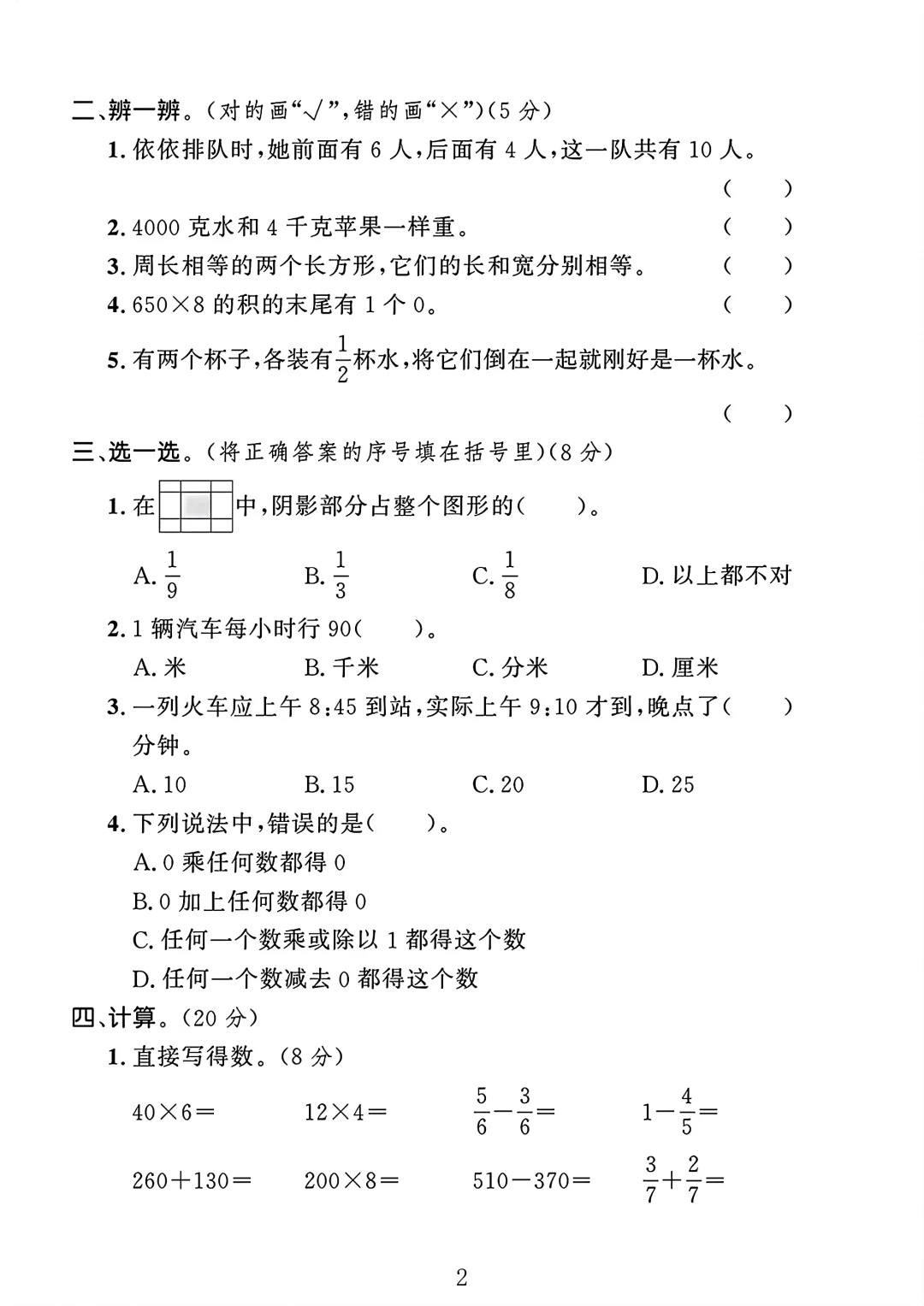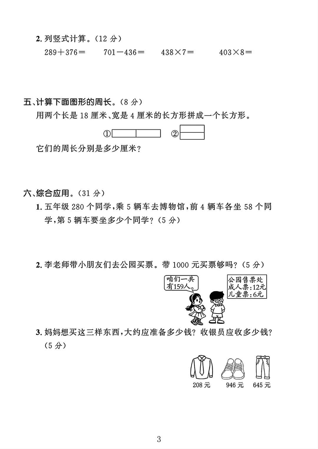 人教版 三年级数学 期末 试卷 期末考试 期末试卷 电子版可打印