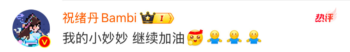 祝绪丹给虞书欣加油 祝绪丹给虞书欣评论:我的小妙妙,继续加油!最好的妙妙和慕瑶~