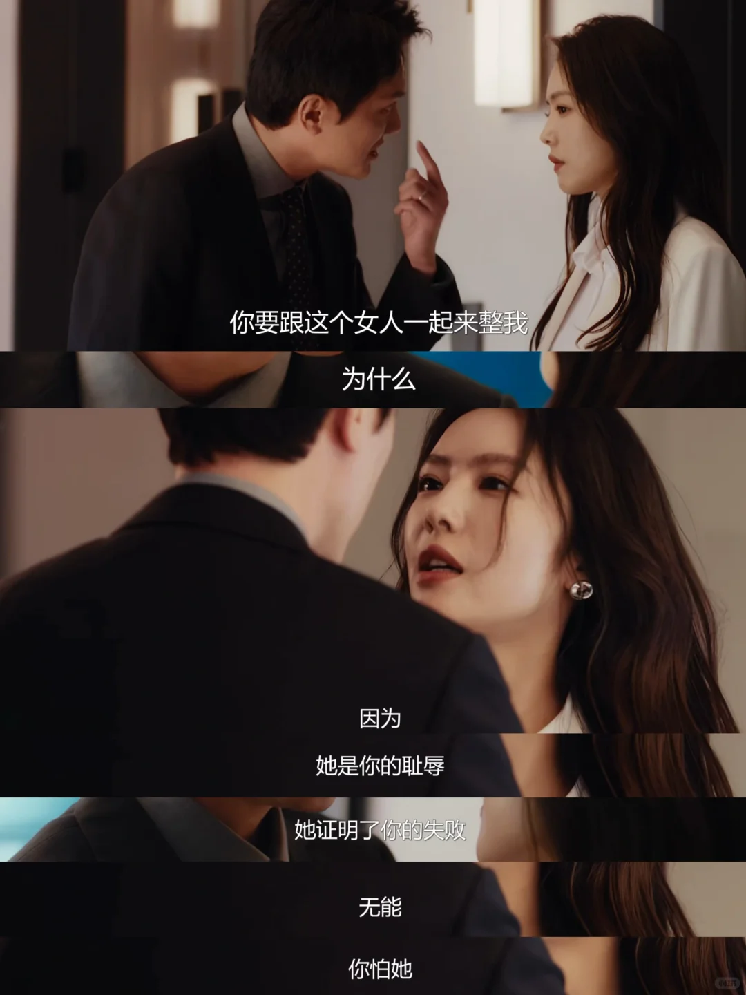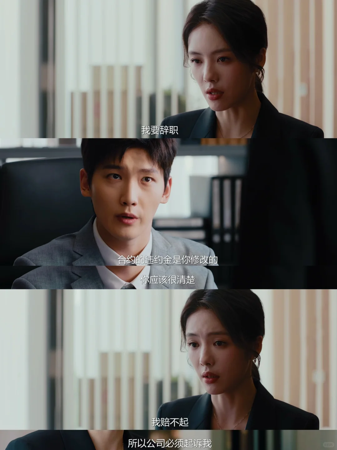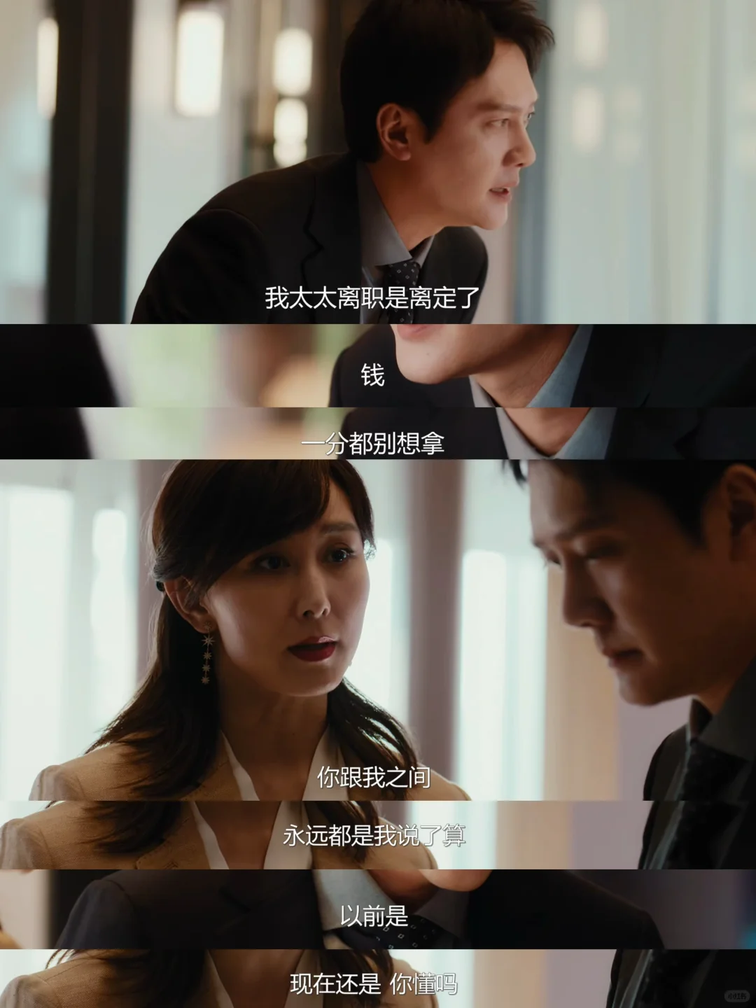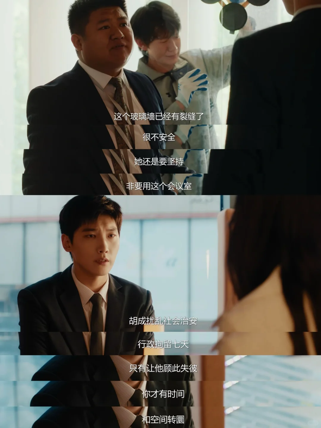宁悦将计就计提出辞职,利用自己签署霸王合同威胁胡成做出选择,并与胡成的前妻罗雅婷联手,选择玻璃墙有裂缝的会议室开会,故意用前妻刺激胡成,一针见血地指出“她就是你的耻辱”。