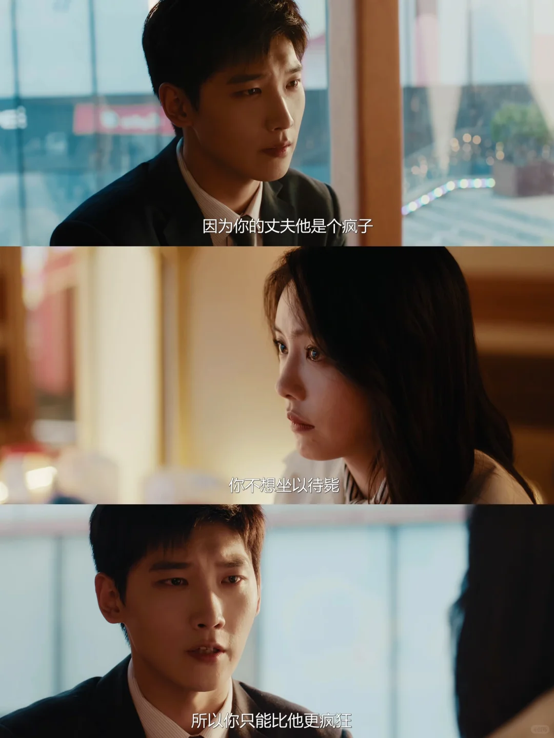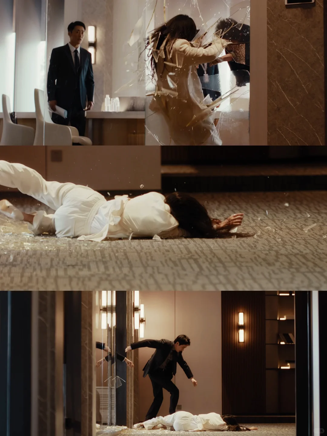 胡成享受掌控,却逐渐走向失控,情绪激动时失手将宁悦推向了落地玻璃。