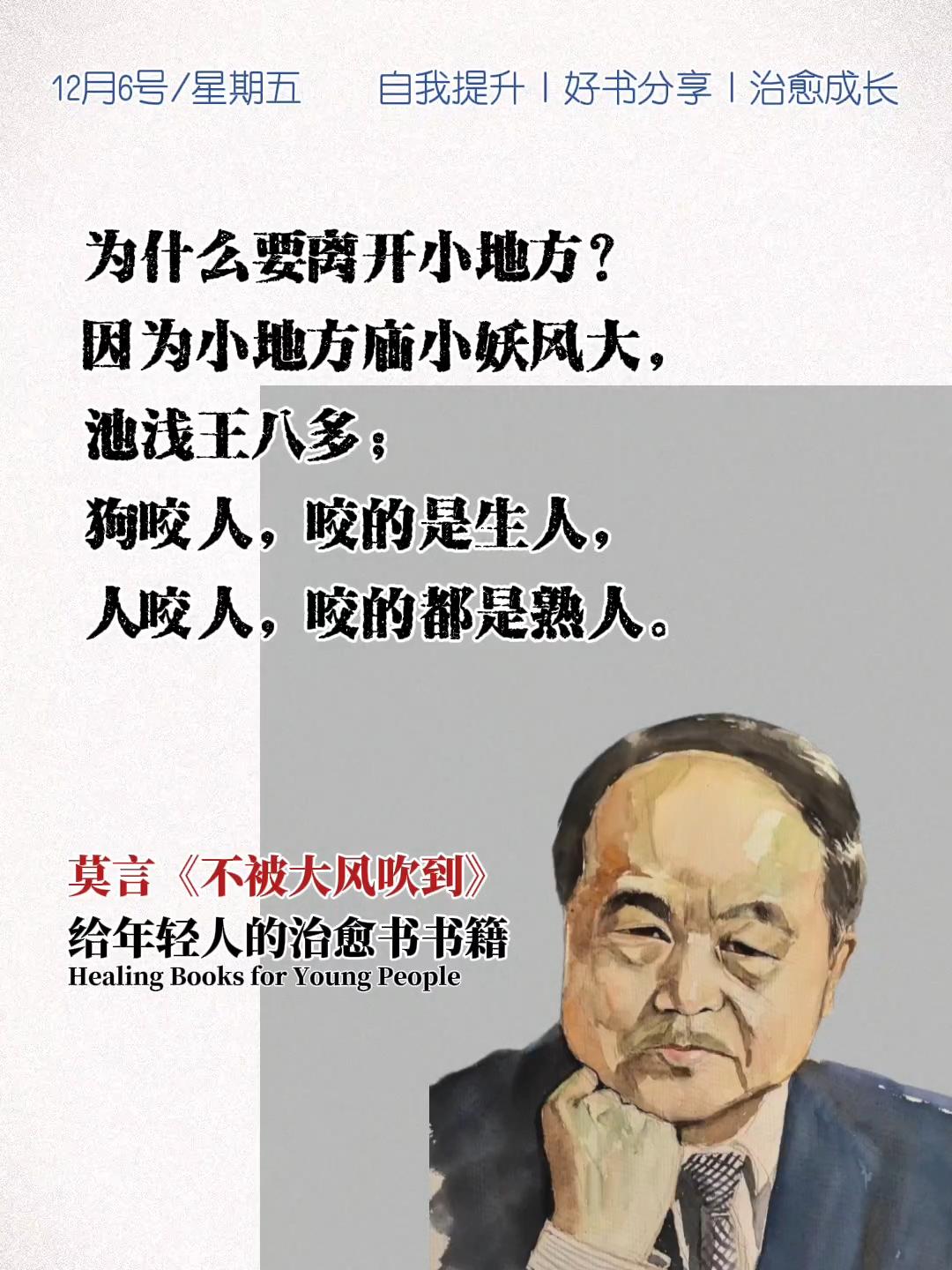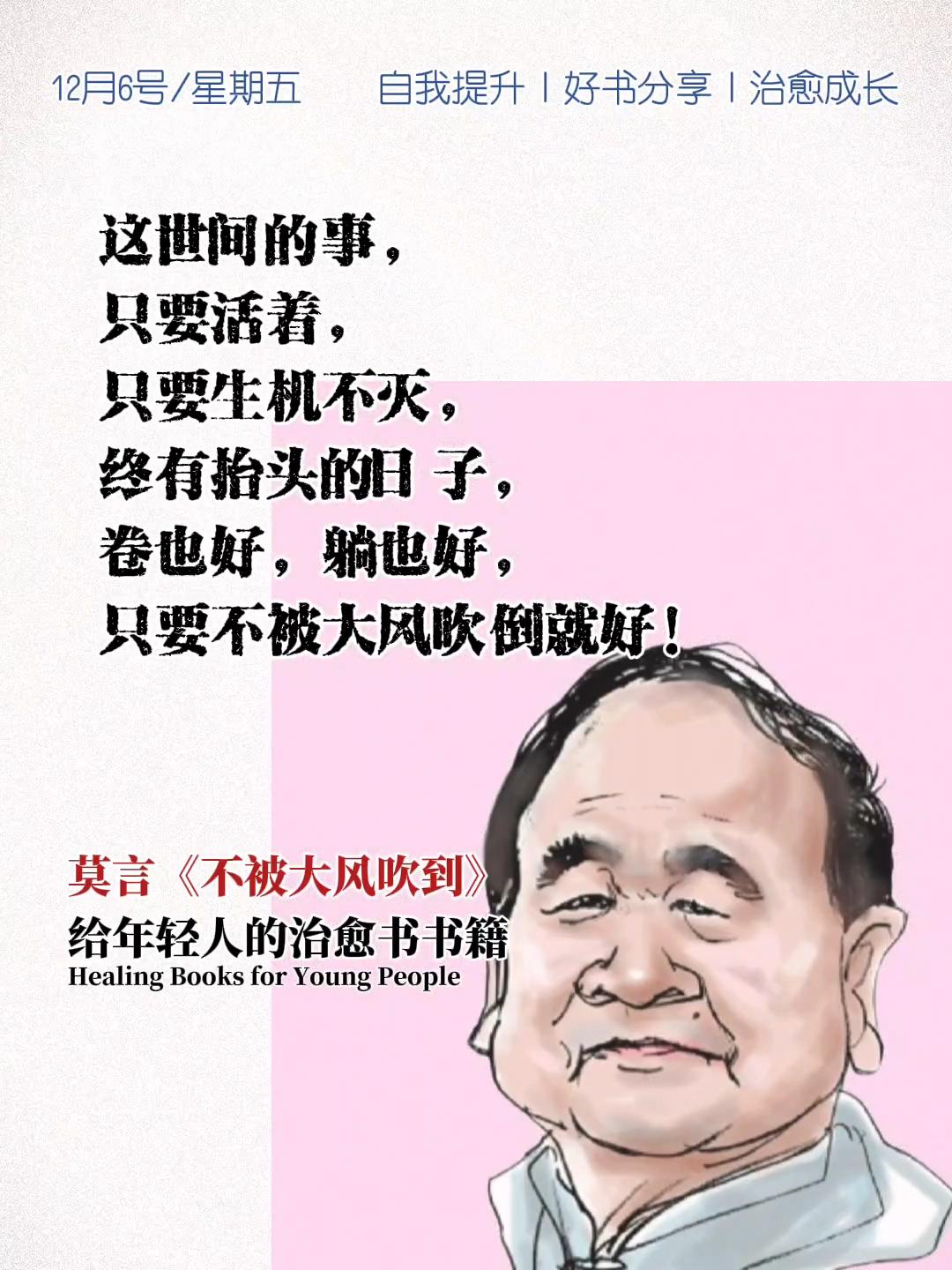 感觉快熬不下去了,一定要读莫言的新书《不被大风吹倒》只要你翻开书里那么一两个句子,就足以让你在人生无数个困顿的时间里头豁然开朗。