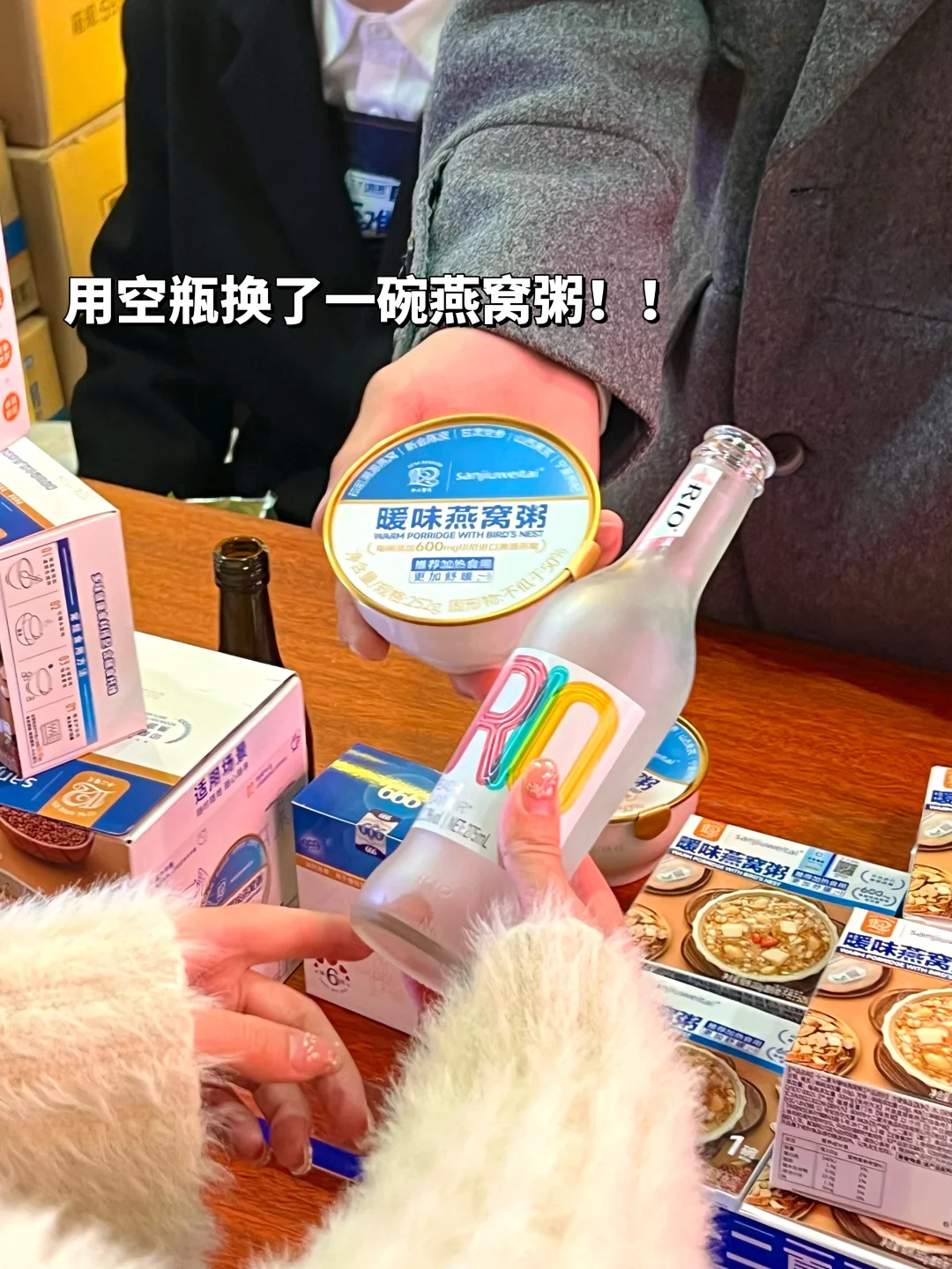 啊啊啊。。在五一街头,拿了个空瓶子换了一碗粥,还是燕窝的,好暖心好好喝!现场的小哥也帅🥹🥹 原来是三九胃泰举办的线下活动👇🏻👇🏻 守护解放西,也守护我们的胃! 喝酒后难免会不舒服,来一碗暖心粥正正好! 现场还🉑制作护胃灯、和店员互动(猜拳➕酒精测试)赢小礼品! 粥很好喝游戏挺好玩店员也挺帅的哈哈哈哈!! 最近心情差的宝子也可在小破站的互动视频里测试“最近的心情值几杯酒” 12月1日-12月8日17:30-23:00 想暖一暖胃的宝宝们都来黄兴广场步行街找三九胃泰~~