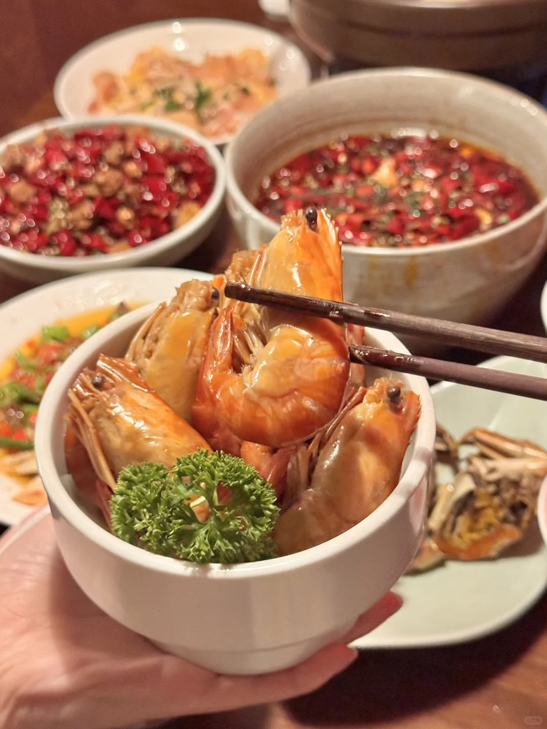 没人能挡住宁波小海鲜的魅力好嘛! 🔥明州美极红膏蟹,头牌必须是他!满满蟹膏,入口即化的生腌蟹肉🦀,赚足回头客啊 掌心大的花雕熟醉罗氏虾🦐,腌制入味,这小酒不整起来