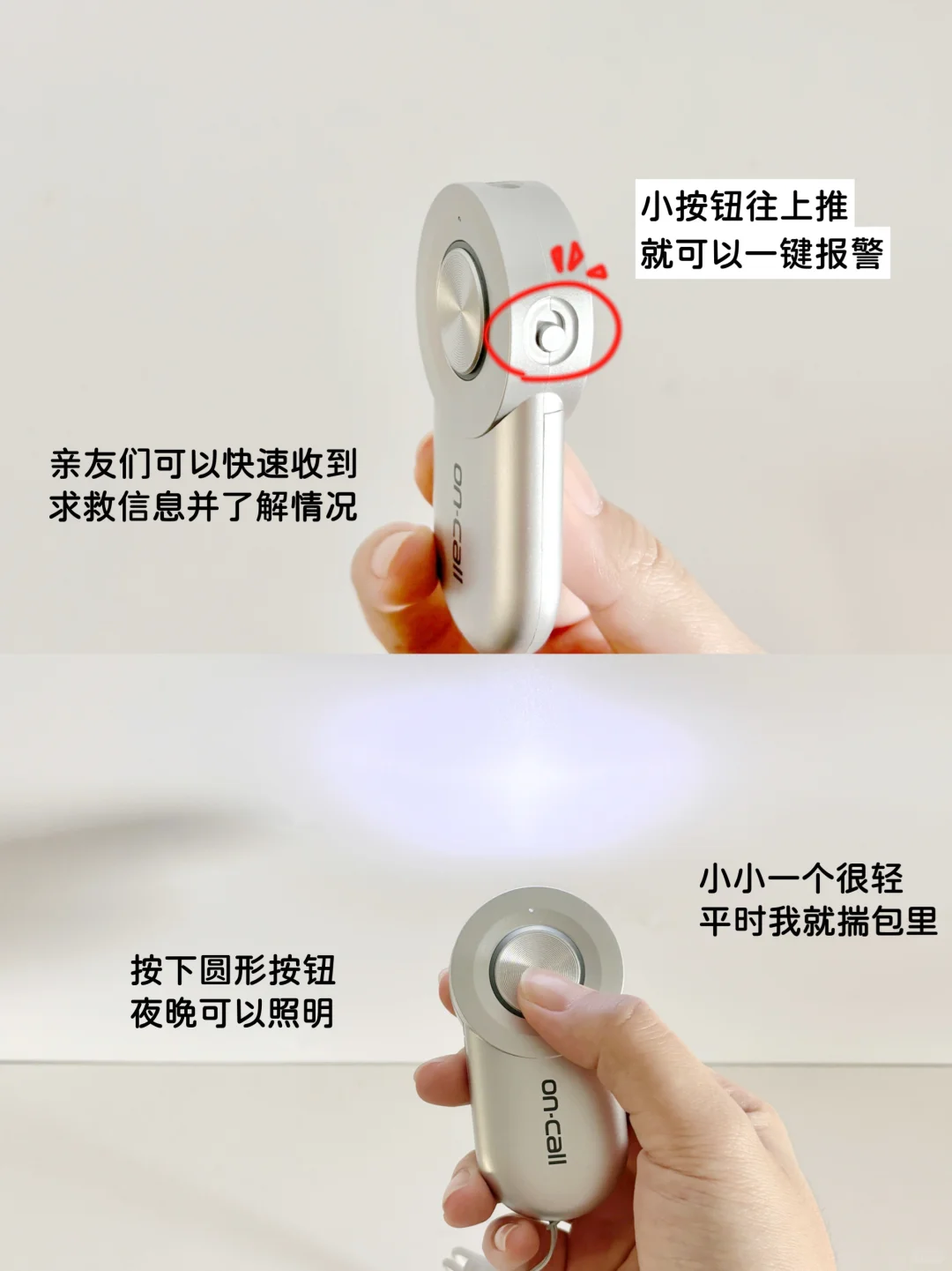 很小一个,带在身上很隐蔽,一键求救很方便