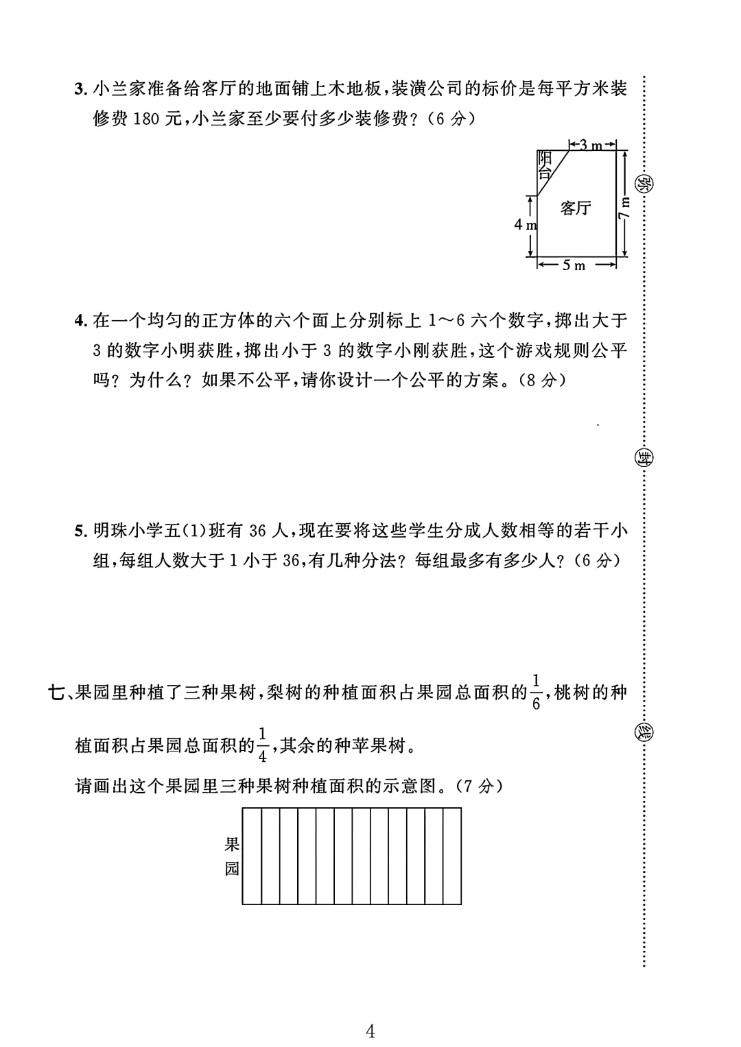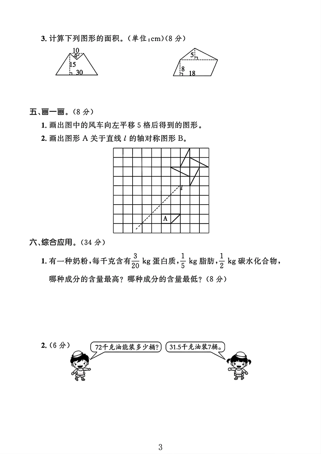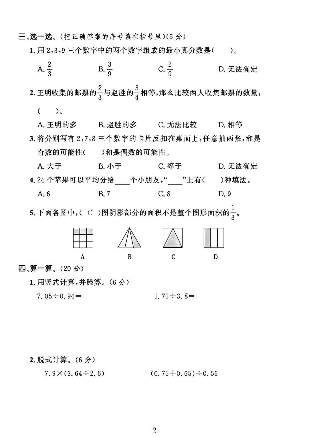 北师大版数学 五年级上册数学 期末 试卷 期末考试 期末试卷 电子版可打印