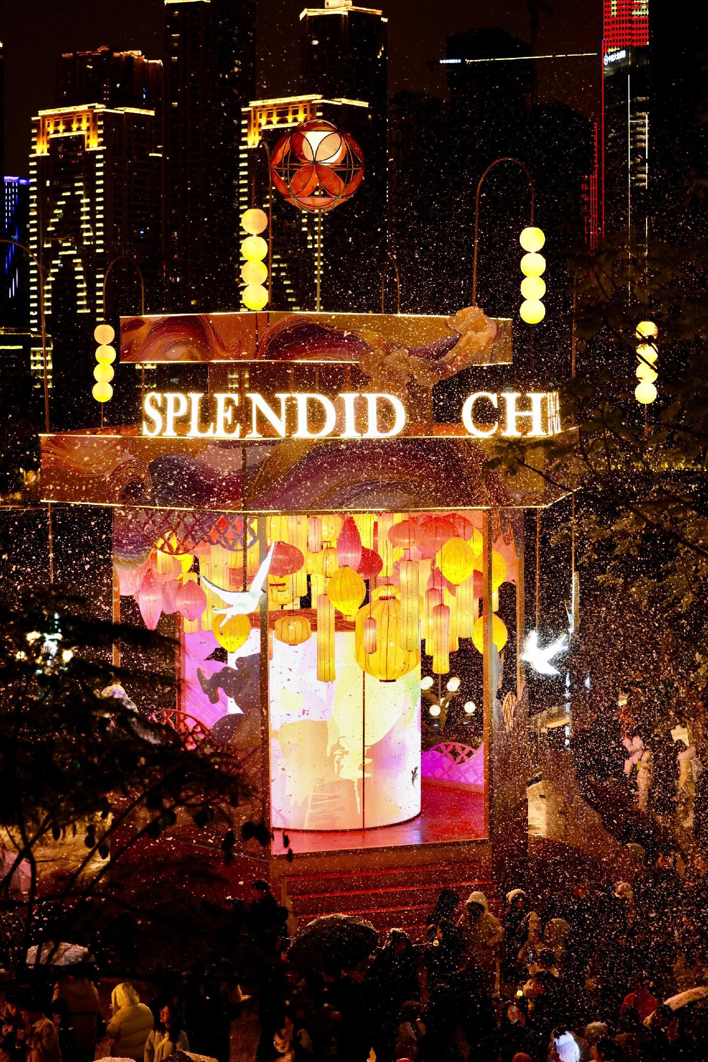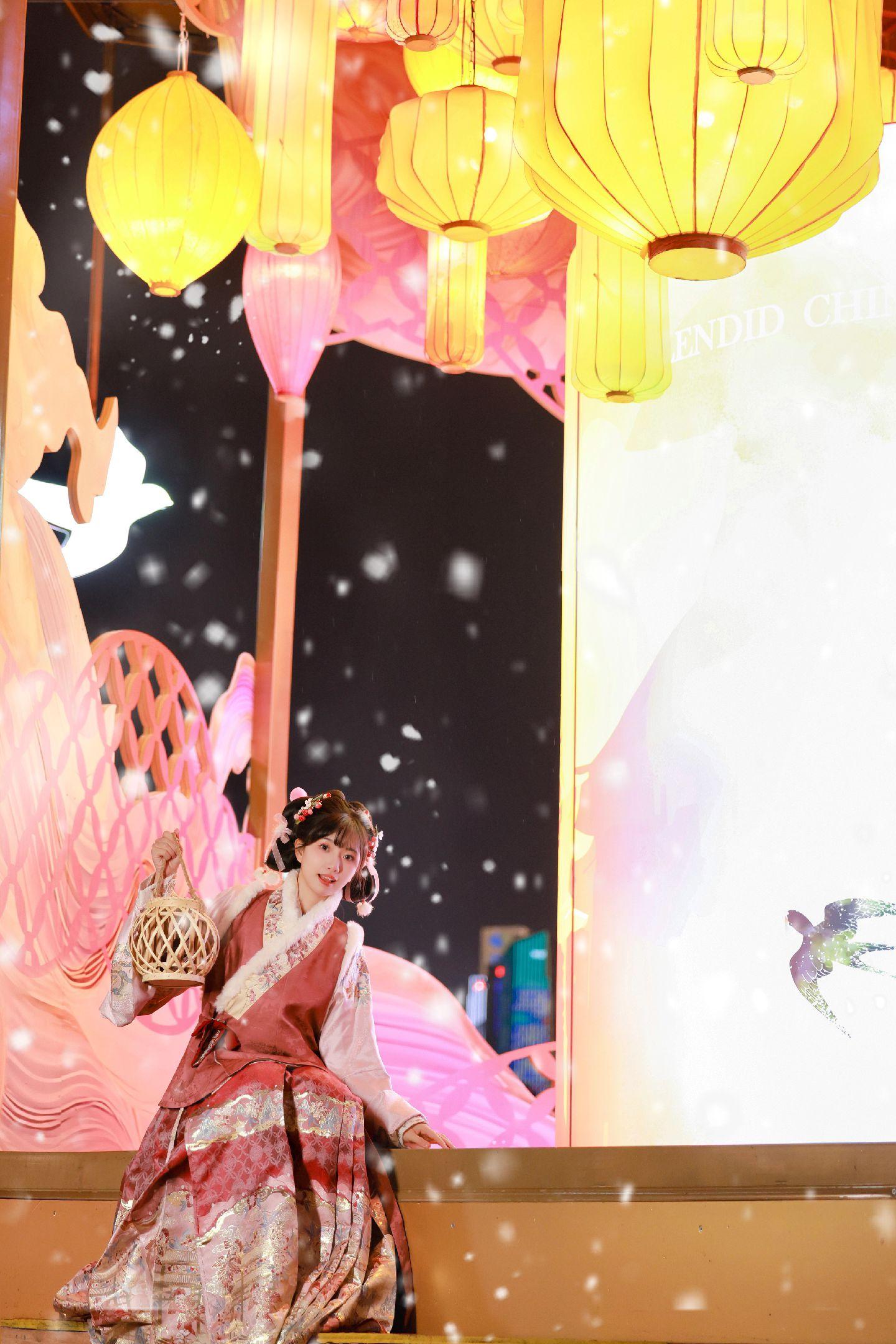 新年氛围已就位🧨。适合跨年来拍灯会的地方又被我发现啦 巨型的走马宫灯在江畔轻轻旋转 雪花片片飘落 拍照也太有氛围感了!!!