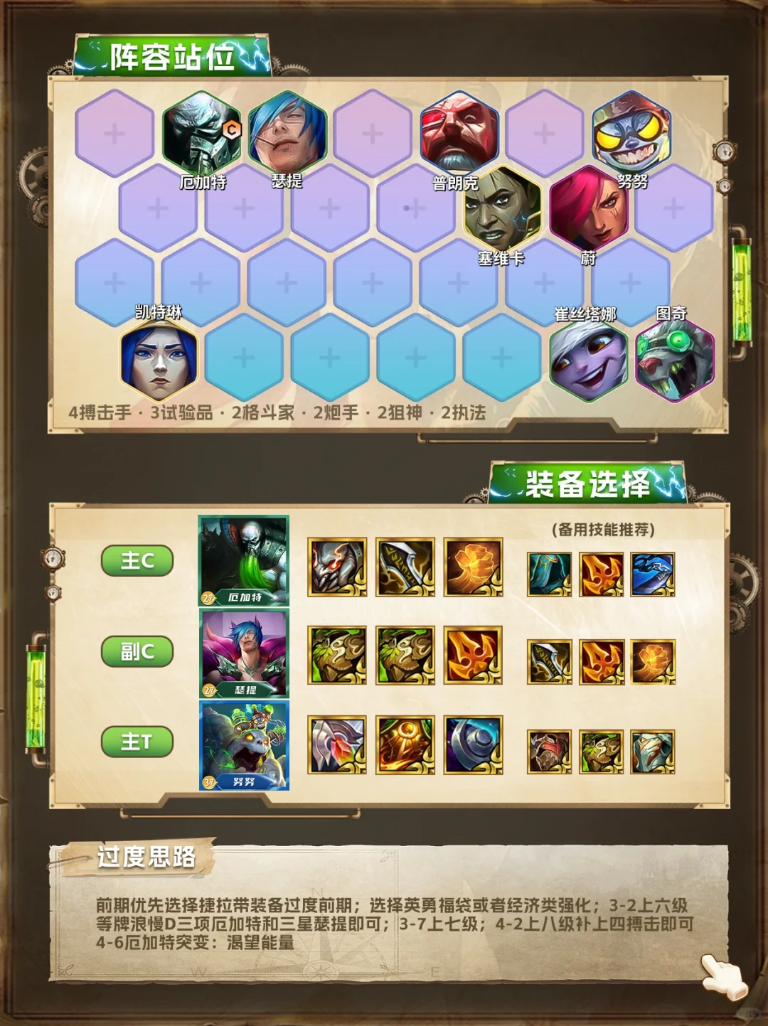 3️⃣阶段:选择经济类强化!补羁绊凑质量!3-2上六级/3-5上7!大抽一波质量3-7前找到三星瑟提和厄加特