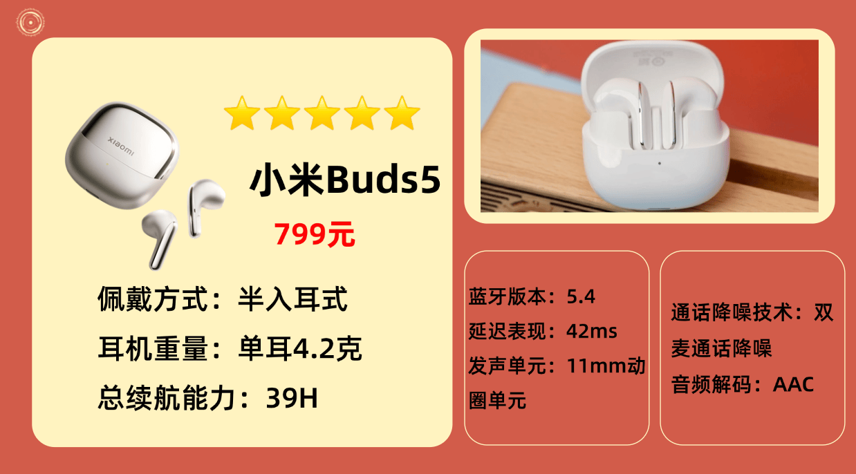 ③七百元价位:小 米B uds 5(799 元)——耳塞部分经过大量耳型数据打磨,贴合度高且具备抗菌涂层,长时间佩戴耳道的闷胀感大幅减轻。