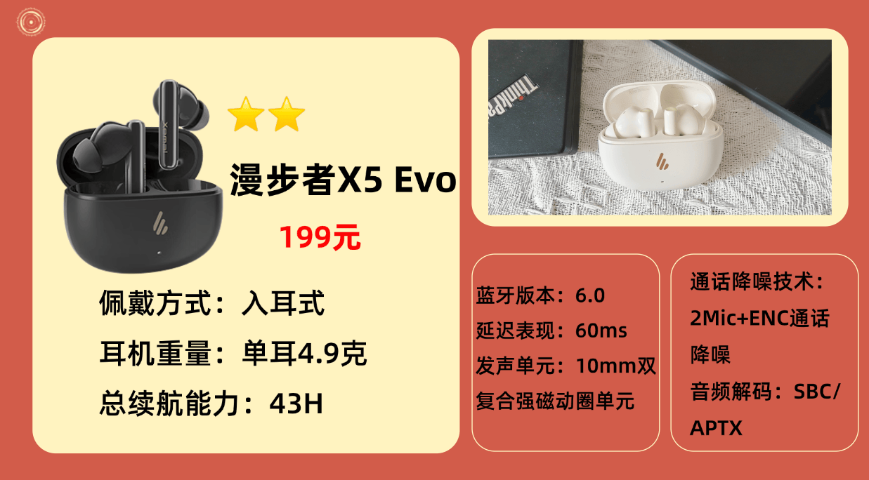 品牌热销款5、漫 步者X 5 Evo蓝牙耳机