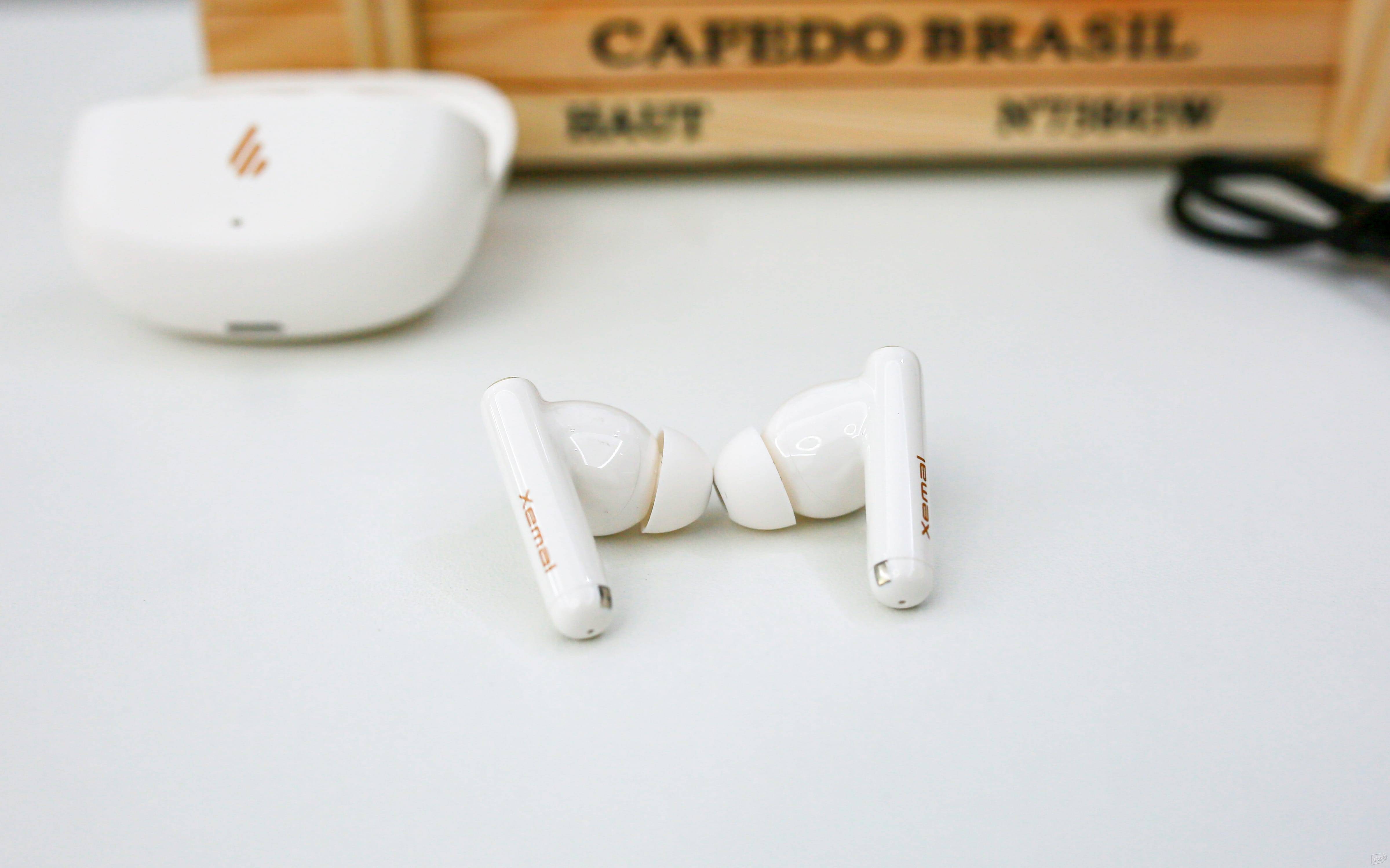 1:这款耳机采用淡雾白配色,整体设计干净简约,磨砂质感外壳带来细腻的触感,不容易沾染指纹。耳机是入耳式结构,附带多种尺寸耳塞,佩戴稳固且舒适,长时间使用也不会产生压迫感。充电仓体积小巧,携带方便。支持IP55防尘防水,无论是在运动、出行还是下雨天使用,都能保持可靠的防护性。