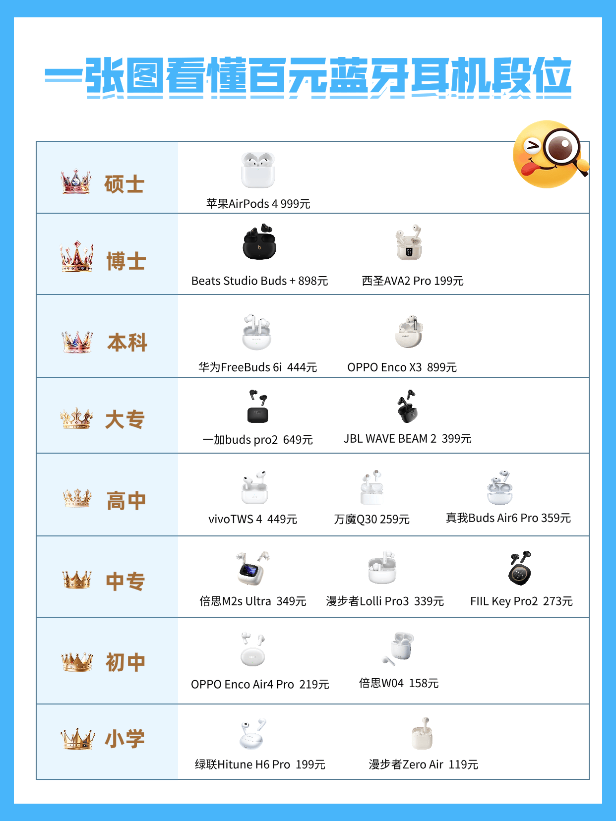 蓝牙耳机什么牌子的音质最好?在公布蓝牙耳机排名前十名的品牌榜单前,我将先为大家梳理不同预算下的优选品牌,帮你快速选购: