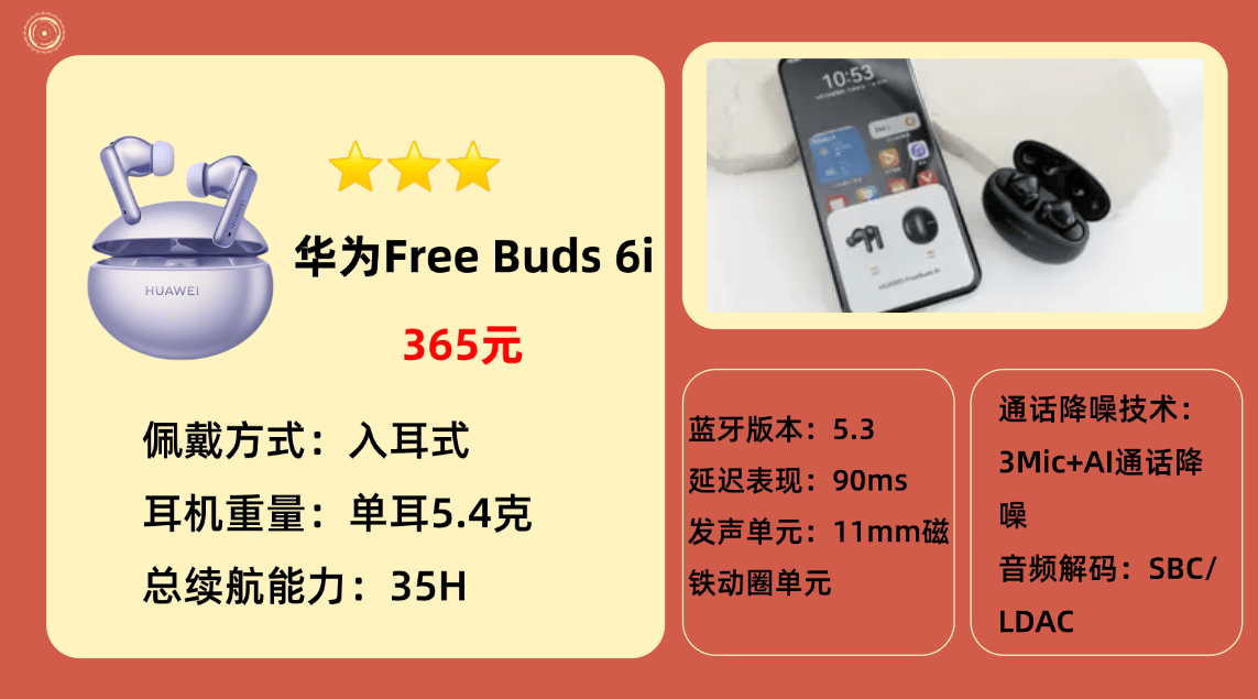 品牌热销款4、华 为F reeBuds 6i蓝牙耳机