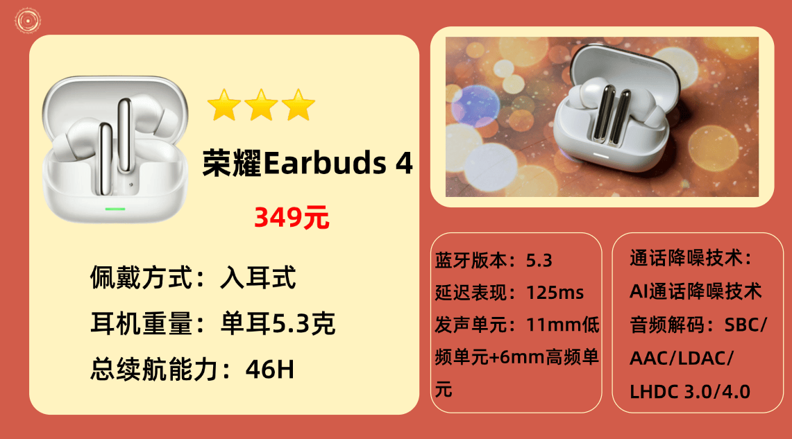 品牌热销款2、荣 耀E arbuds 4蓝牙耳机