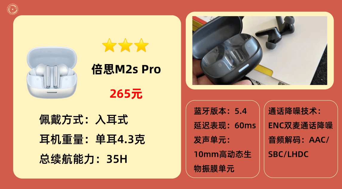 品牌热销款10、倍 思M 2s Pro蓝牙耳机