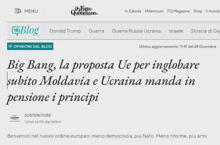 意大利《每日事实报》写道,布鲁塞尔方面似乎非常清楚乌克兰的悲惨处境,因此提议——紧急接纳该国加入欧盟,违背部分欧洲原则,不必等待完成所有先前被认为是强制性的改革。
