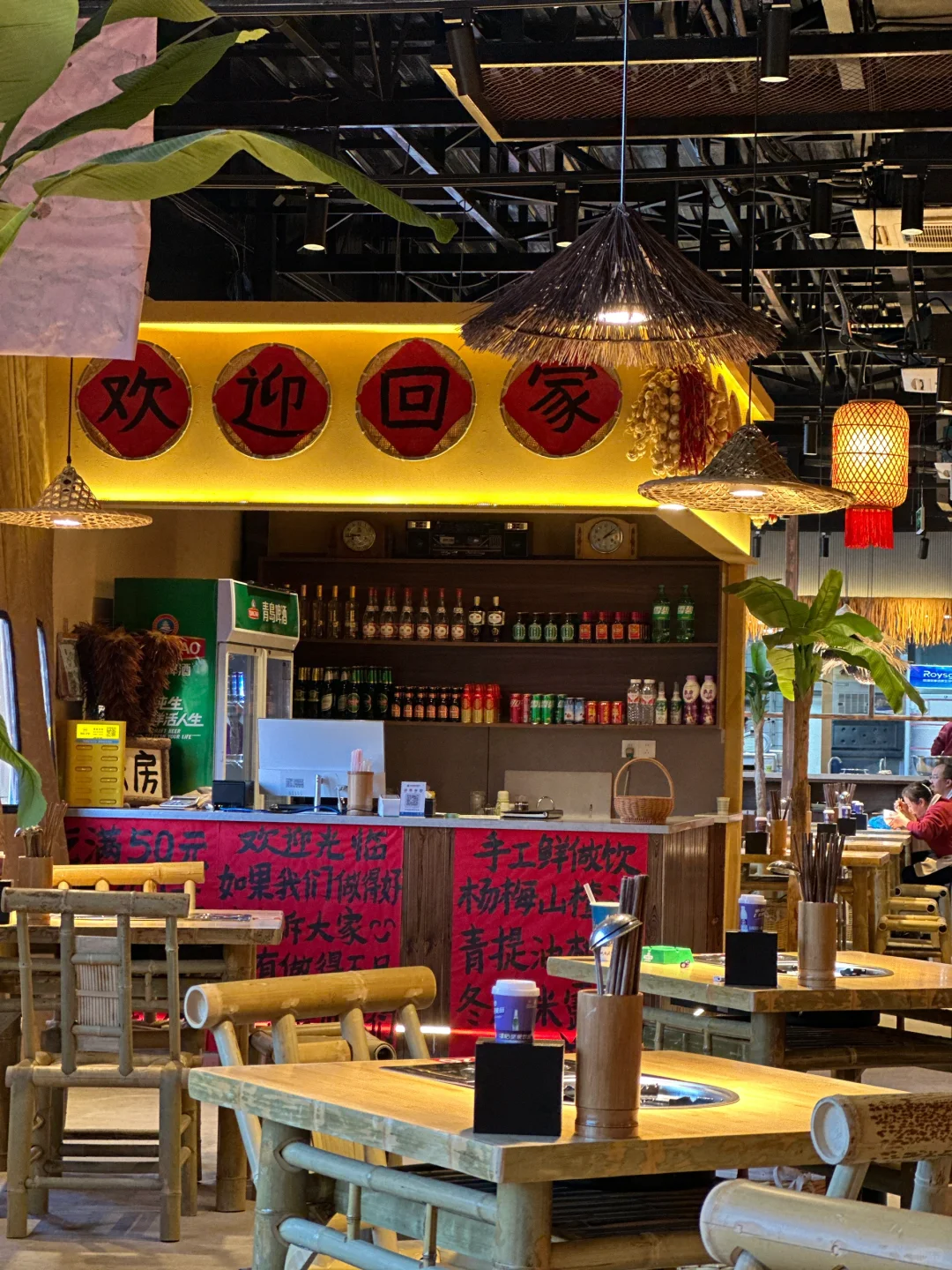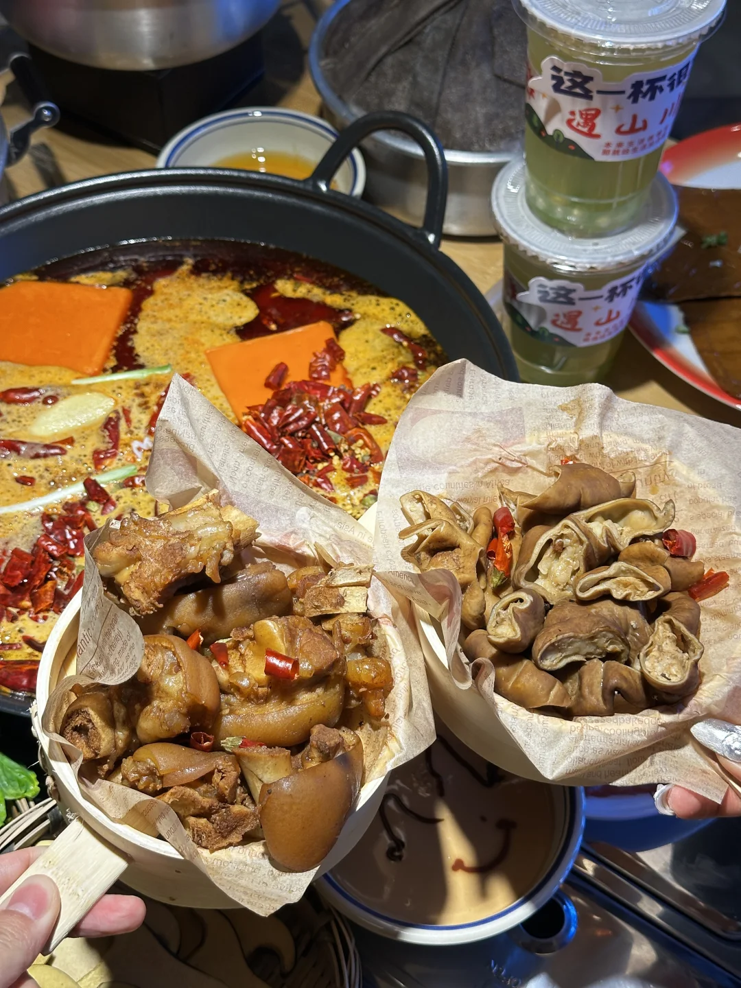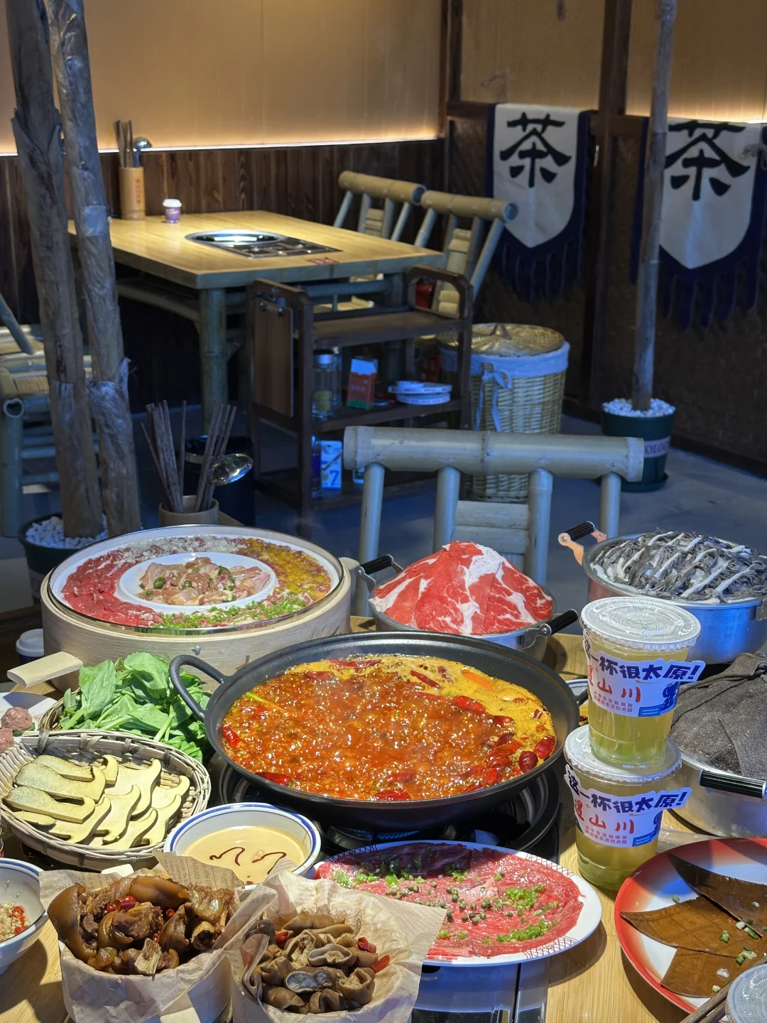 绿植环绕,藤条竹椅,很重庆市井火锅那味儿啦!!小吃零食开开胃,闻着味儿都馋的不行不行啦!