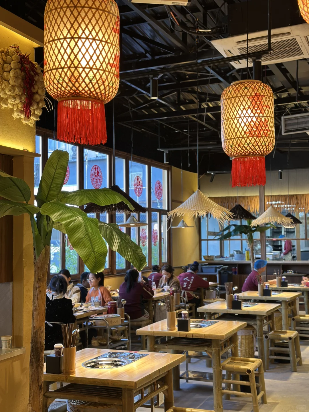 环境真的很好看,他家有点那种厂房式的那种重庆火锅的感觉,像那种在重庆居民楼下吃火锅的那种,店里的圣诞树已经安排上啦!气氛满满的‼️