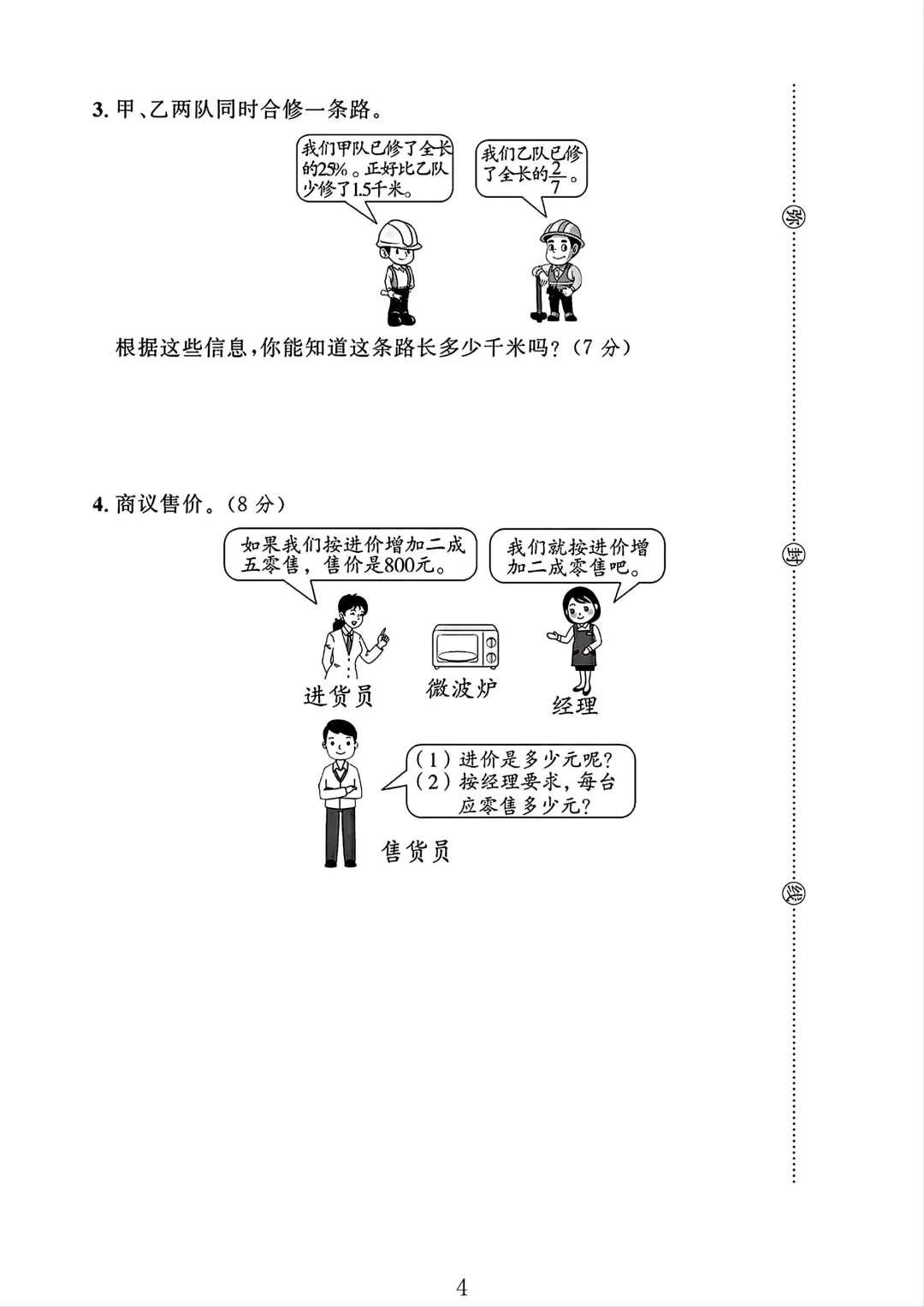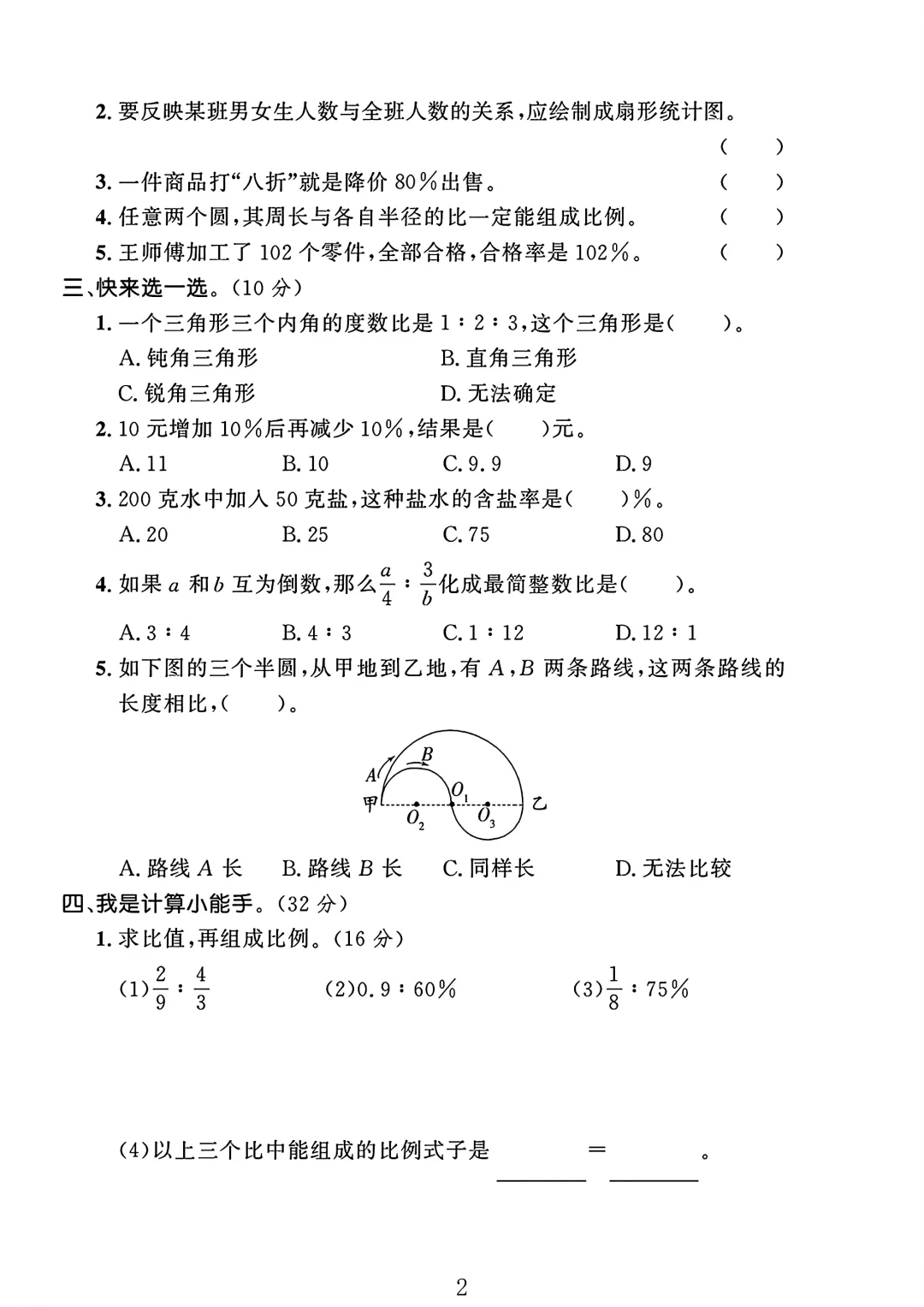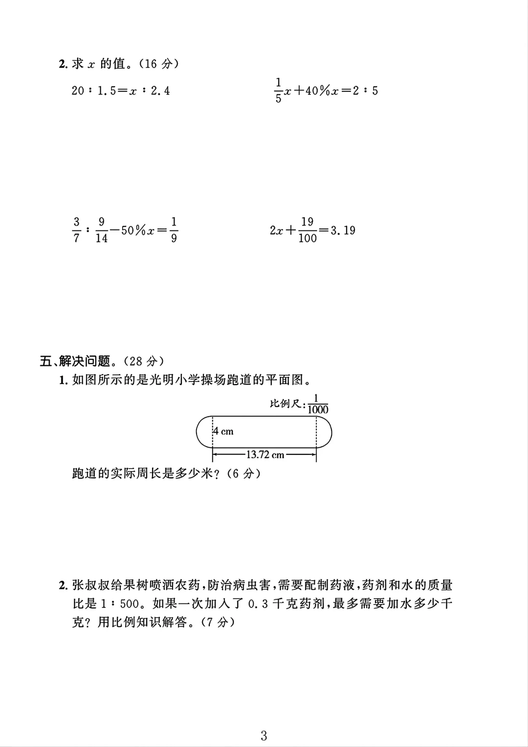 冀教版 六年级上册数学 期末试卷 期末考试 期末 试卷 电子版可打印
