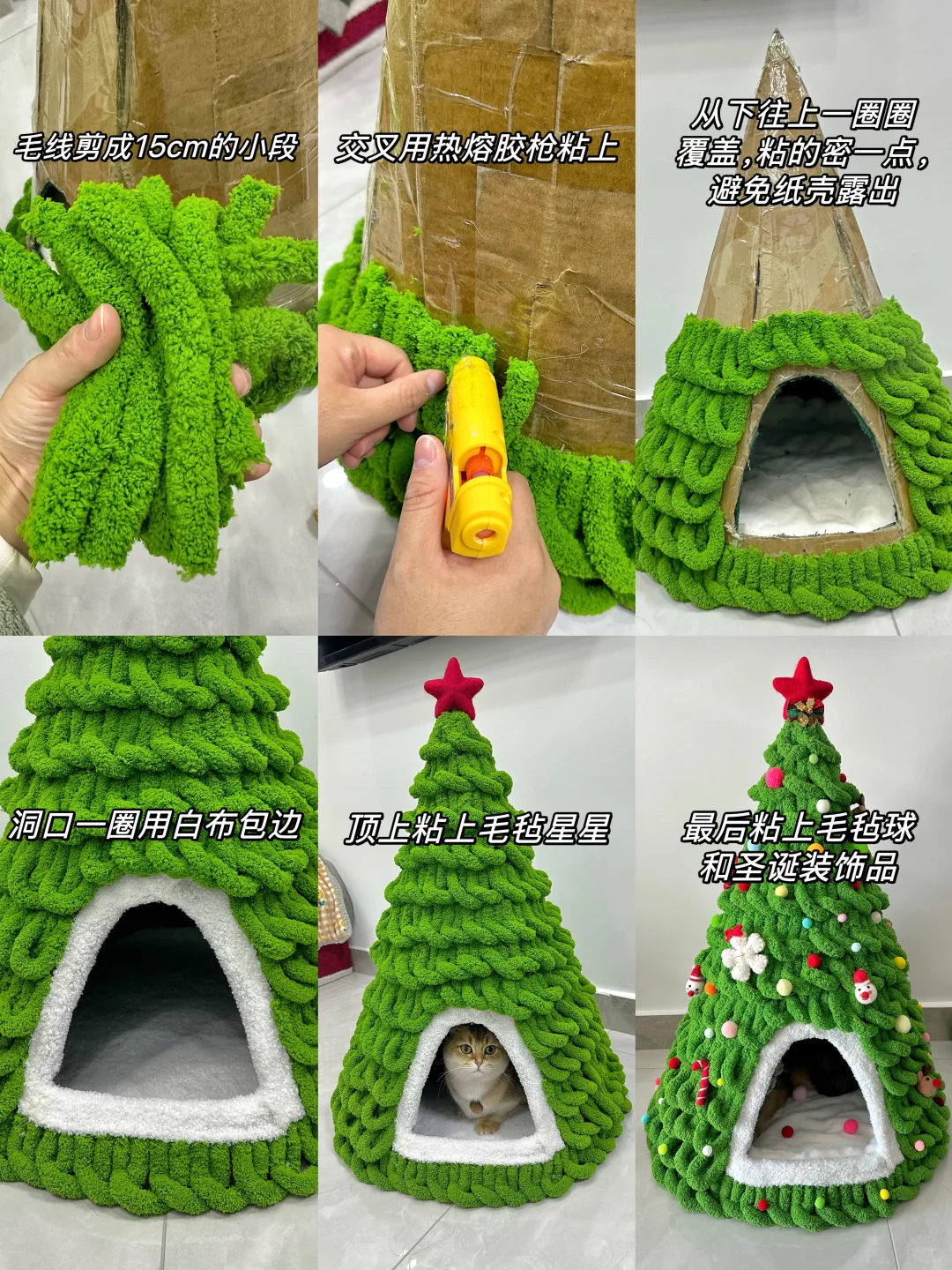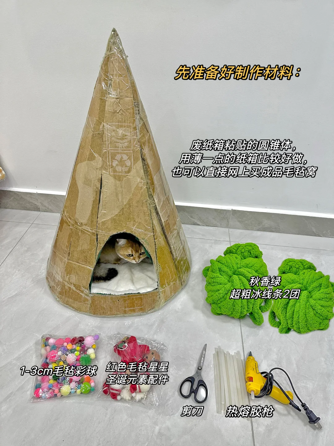 圣诞节快到啦,给家里做棵氛围感满满的圣诞树吧🎄我今年做了圣诞树猫窝🐈,既美观又实用,摆在家里超有仪式感,🥰感觉我家猫猫也超级喜欢,还没做好就迫不及待进去玩啦🤭,家里有毛孩子的快来抄作业吧!🥳