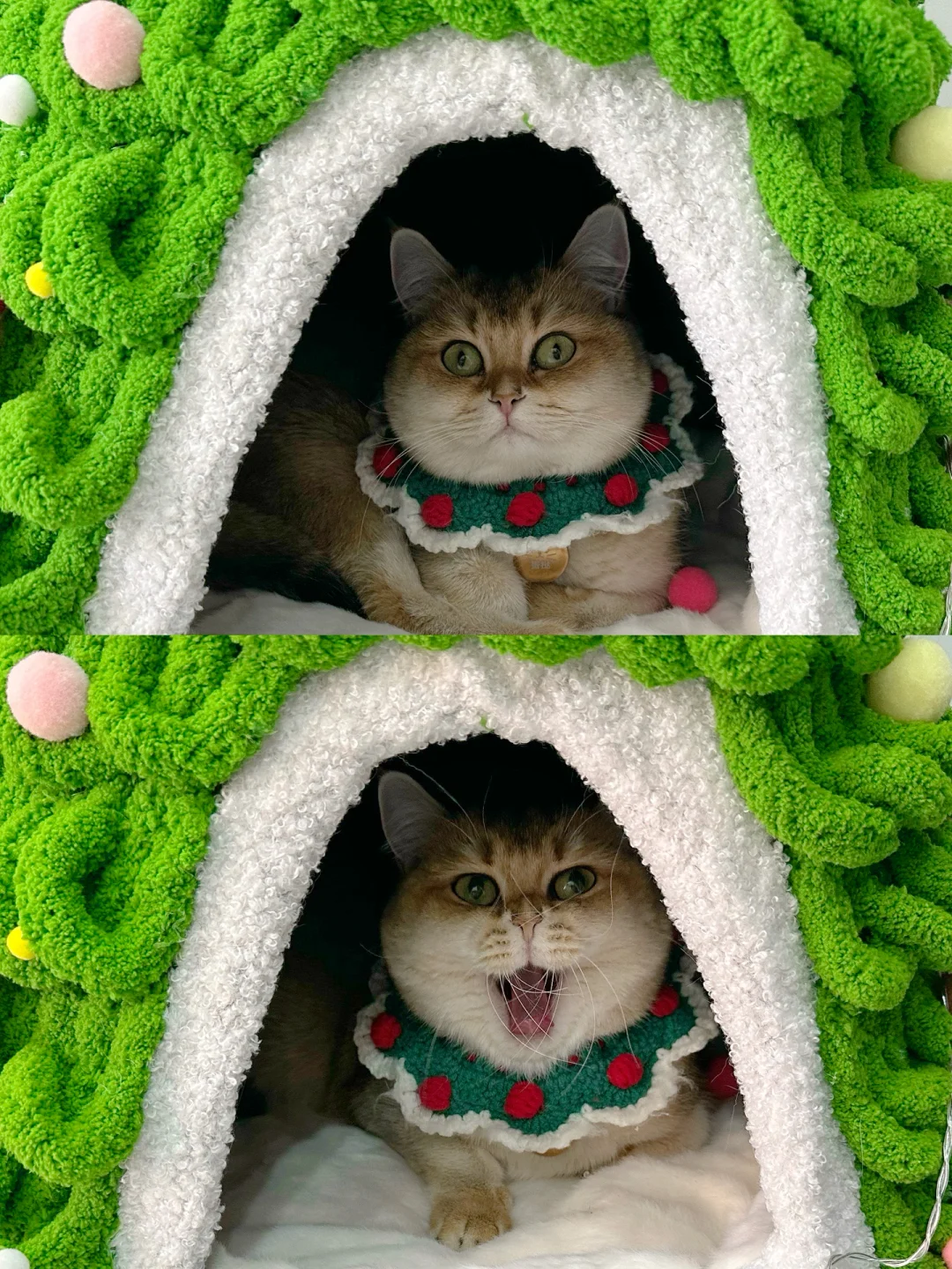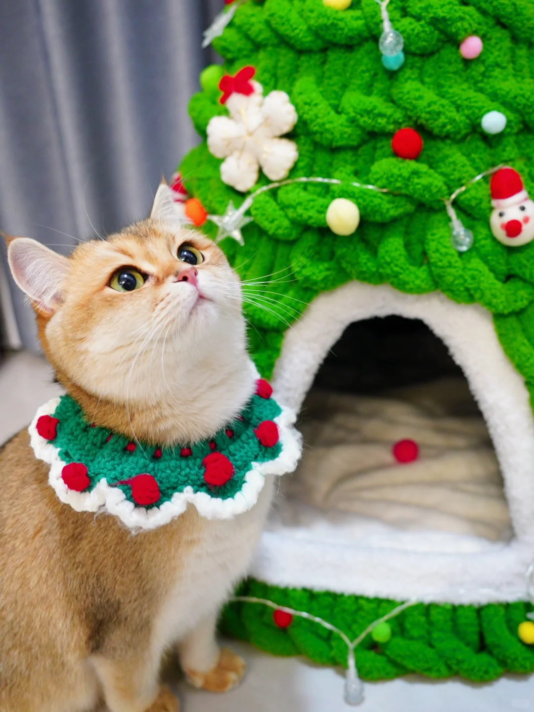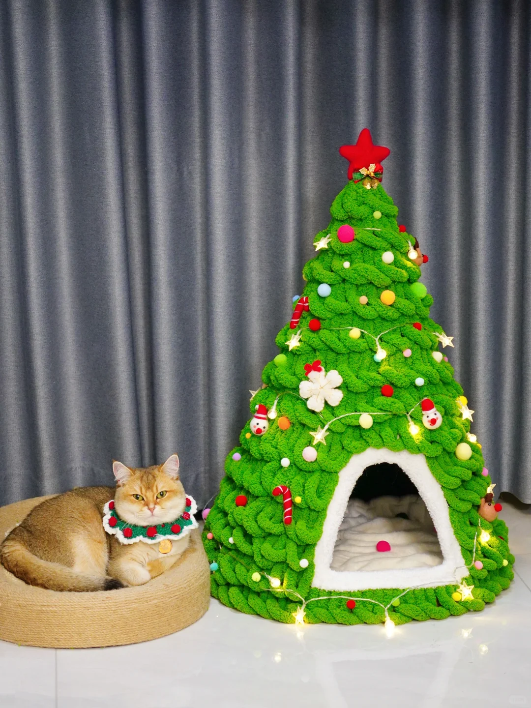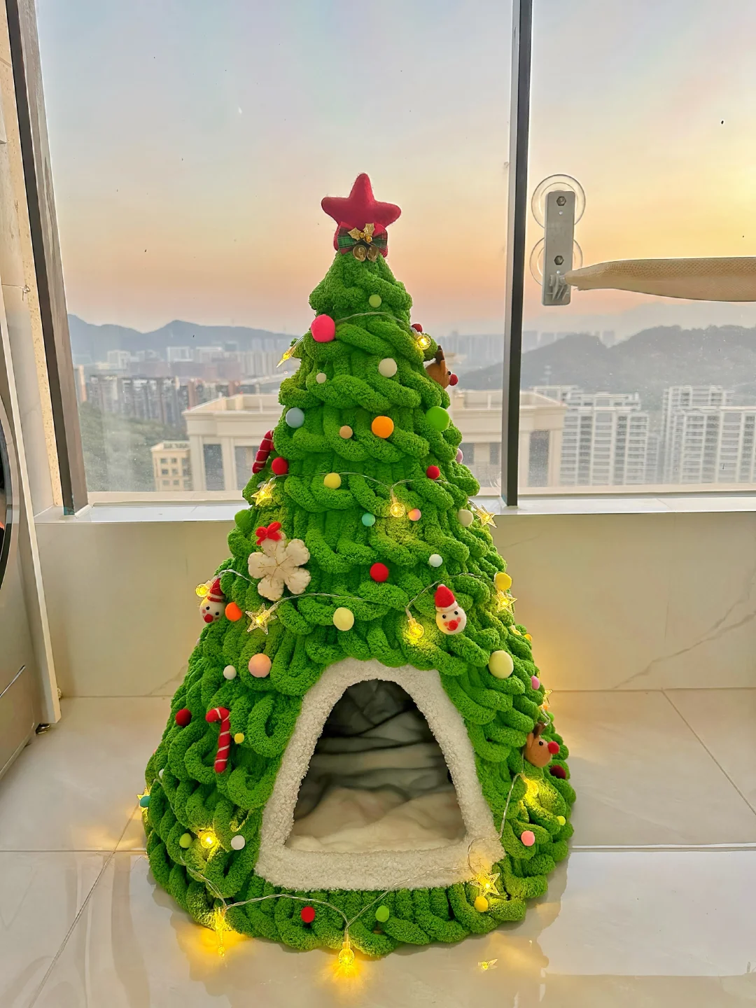 7️⃣最后放一个柔软的猫窝垫,舒服又暖和的圣诞树猫窝就做好了!