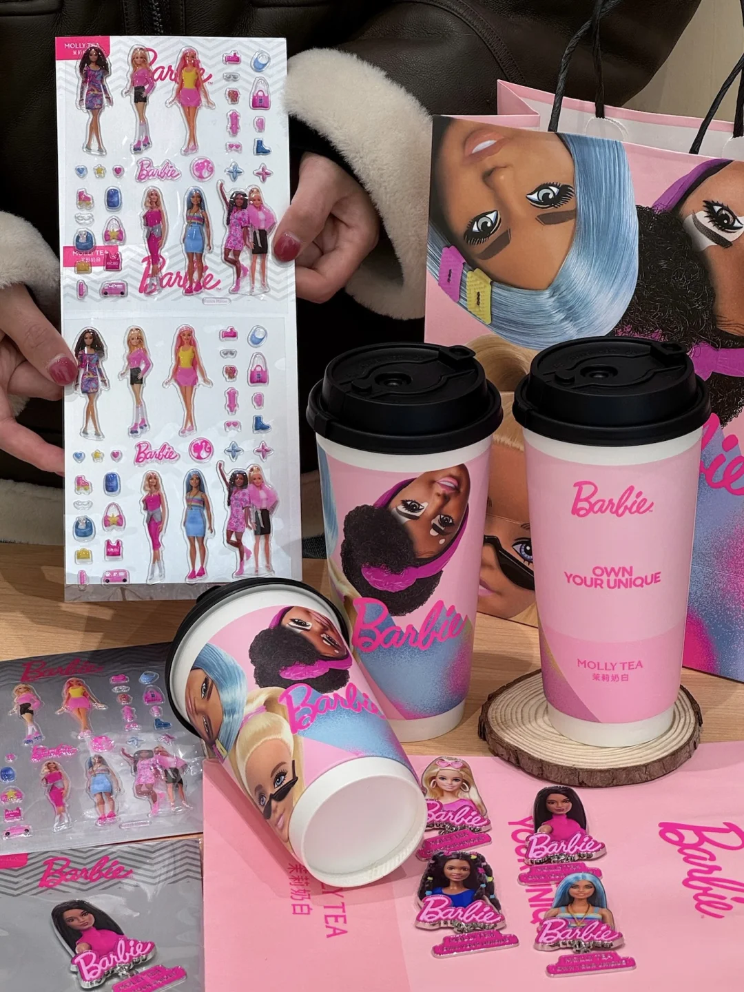 谁还不知道茉莉奶白和芭比联名了!是本公主完全抵抗不住的芭比粉!💕敲好看的变装贴纸!还有四款金属冰箱贴!全部all in好快乐🥹在芭比世界里美妙了一整天!!