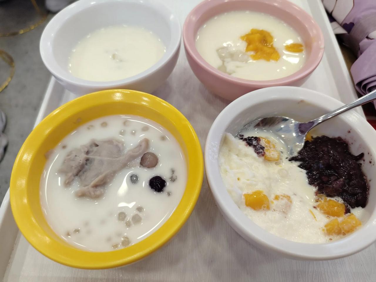冬日生活分享我体验了有趣的甜品自助,是个连锁店【拾光甜品研究社】意面、芒果白雪黑糯米、芋圆杨枝甘露、桂花酒酿酸奶、奥利奥班戟、葡萄吸吸冻椰奶大满贯等很好吃。每份小小的,一个小时内,可以无限点他家60+甜品,一次点6份,只要39,超级实惠。但也能吃13-15份就极限了!