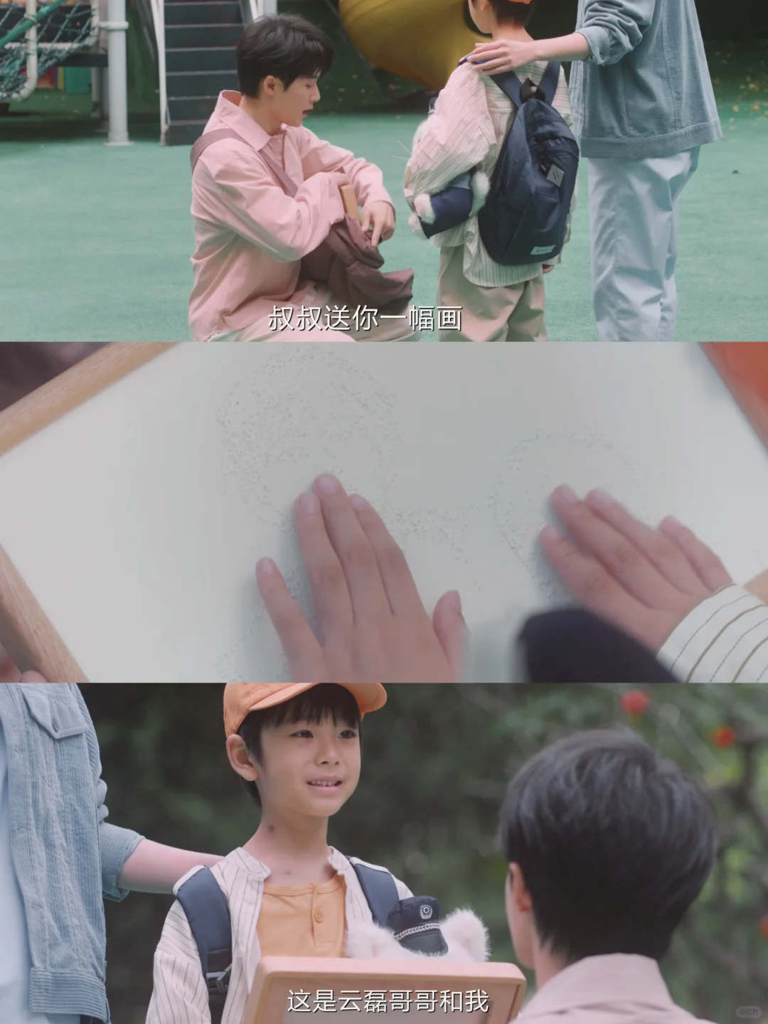 最后的最后,沈翊用盲文的方式送了他一幅画,画上正是小鹏和他的云磊哥哥。小鹏也摸了摸沈翊的脸,记住他的样子🥹到了杜城那,摸了摸他的👮证,小鹏牢牢记住了上面的👮徽。