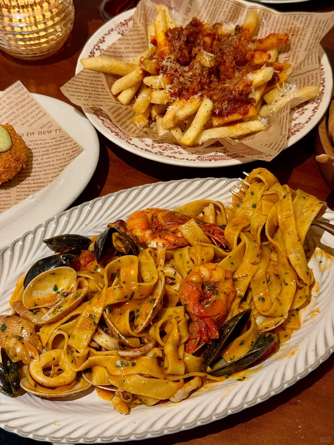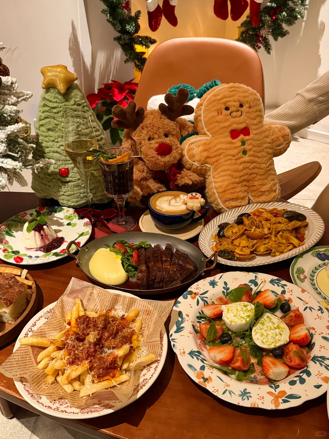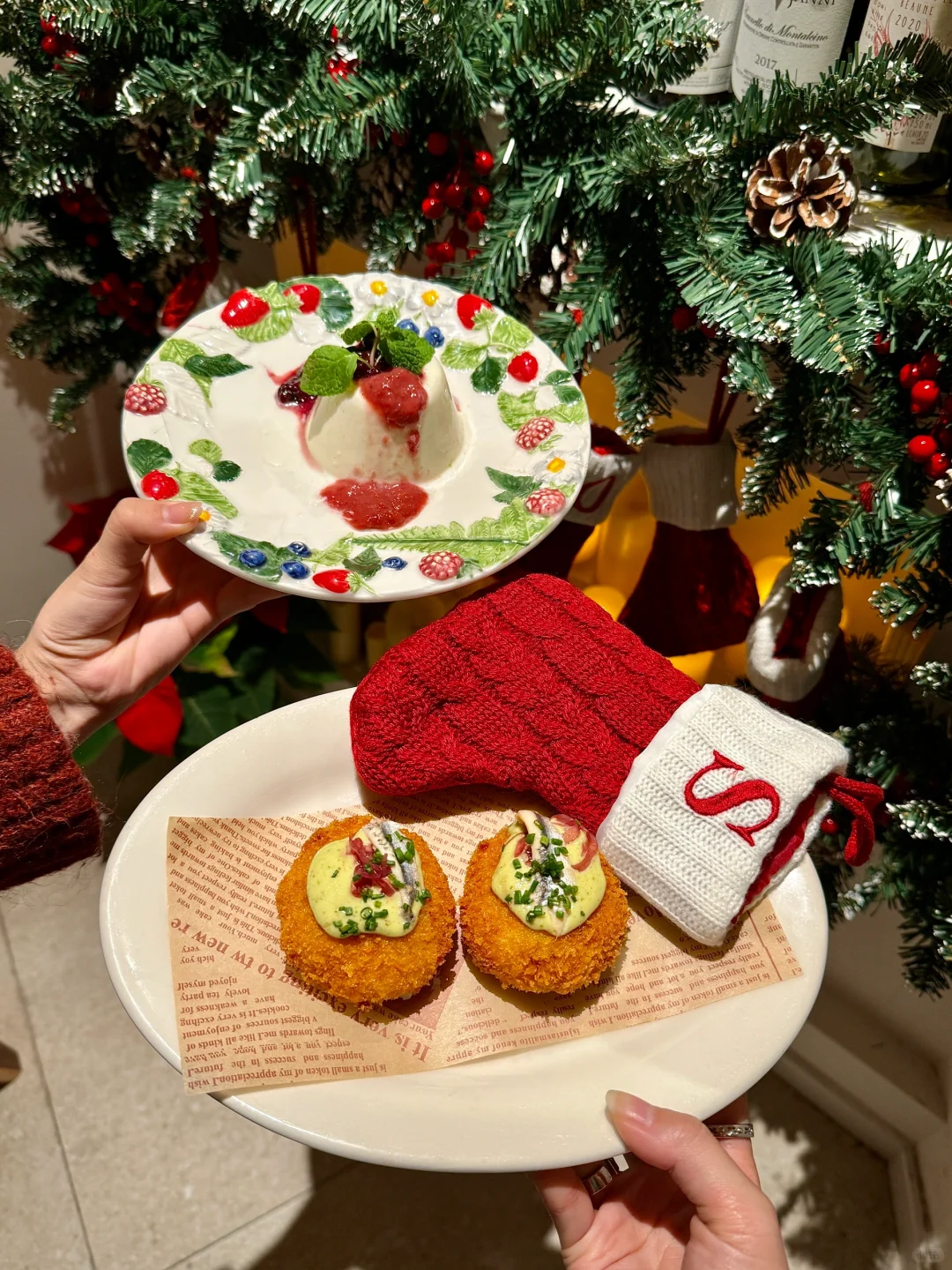真的美爆了!!门口有大花环💕圣诞树🎄雪人⛄️ 光是这个门口就能拍800张图了哈哈哈😂 不愧是利西路的排队王👍感谢闺蜜提前预约让我吃上了这一顿圣诞餐🎄🧑🎄 记得点热红酒🍷姜饼拿铁☕️ 芝士鳕鱼丸子🍡拍照都是嘎嘎出片的~ 海鲜手工宽面🦐意式炭烤M7安格斯西冷🥩新鲜布拉塔配火腿🔥都很好吃 推荐大家点哦