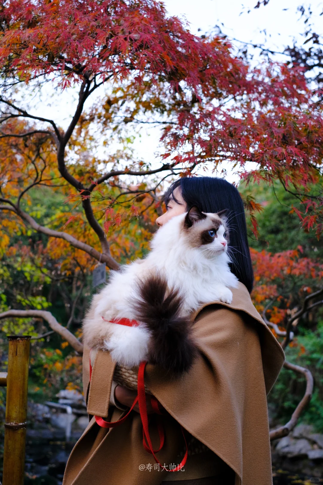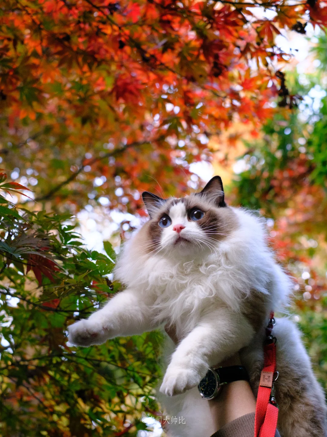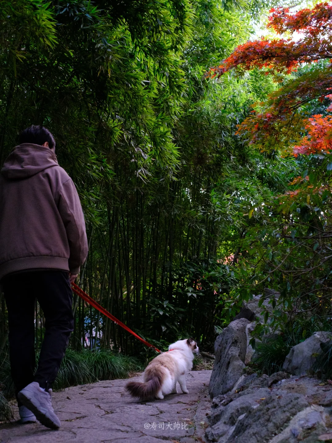 赶在秋天的尾巴 好好和秋天告别啦 托小猫的福也是妈妈第一次赏枫叶呢[害羞R] 和小猫一起赏过樱花和枫叶 春天是你 秋天也是你 希望往后的每一年都是你[红色心形R] 拍摄日期:2024.12.08 地点:上海桂林公园 围脖:胸背:haqihana 柿锦红 牵引绳: