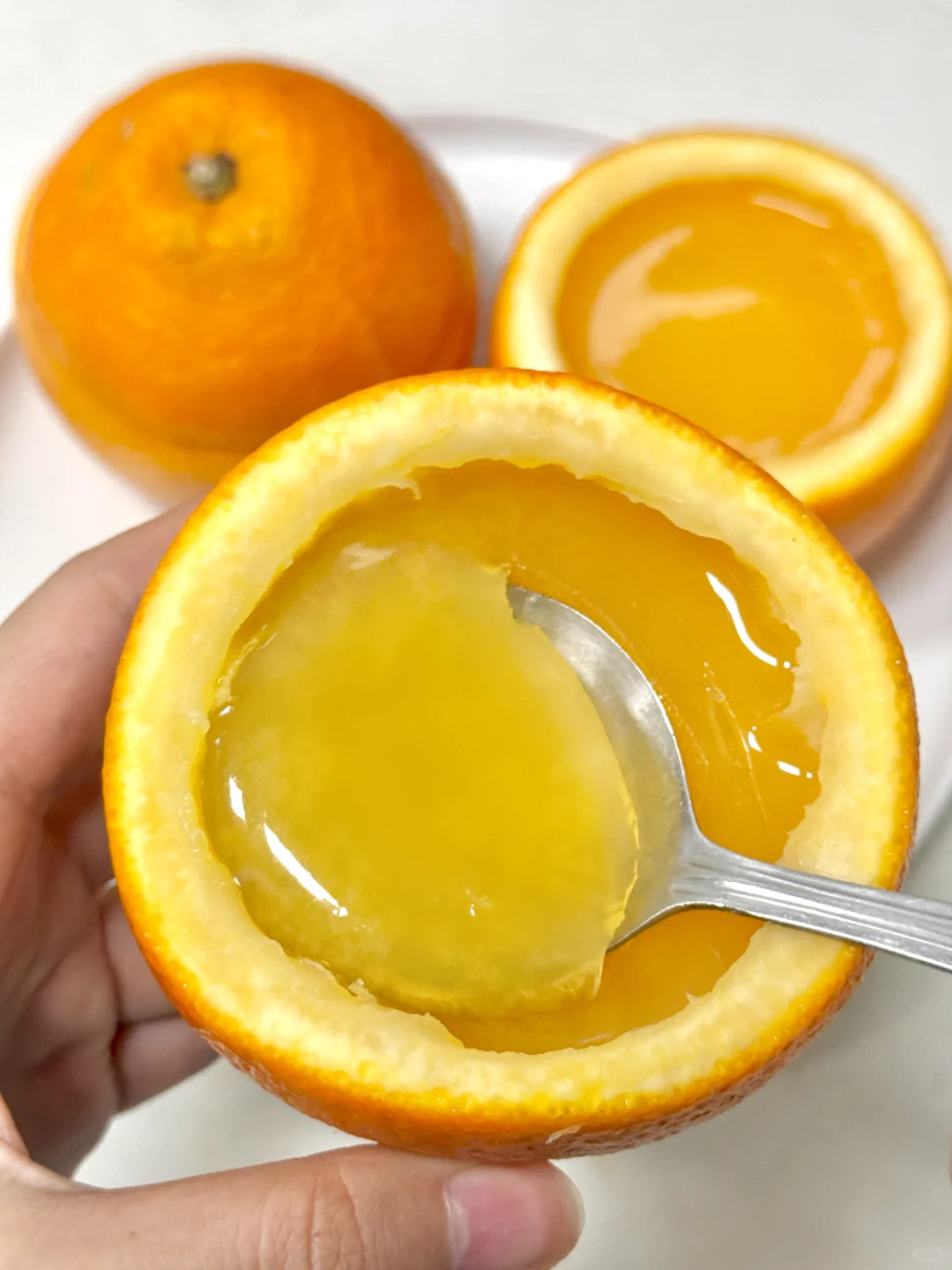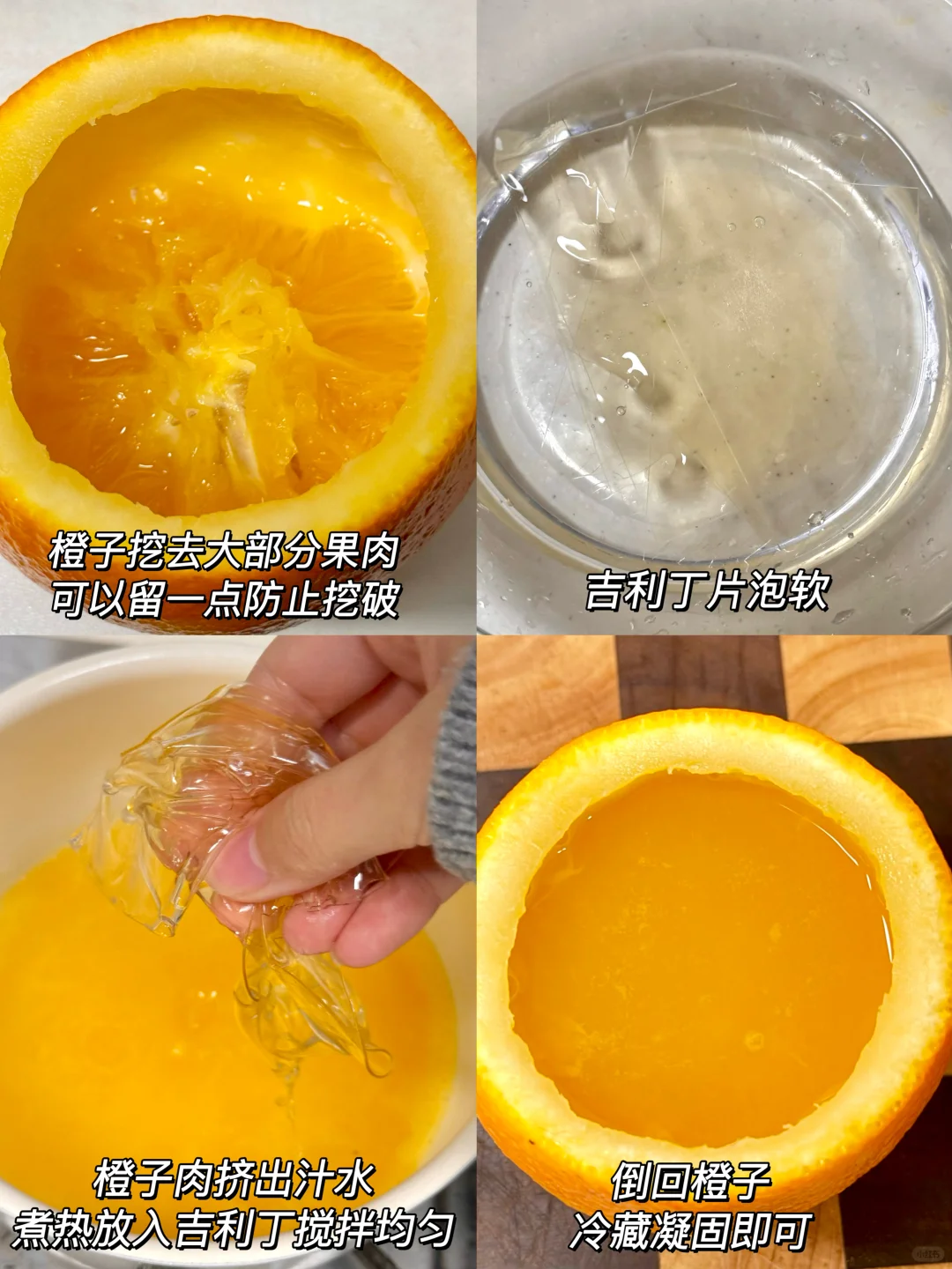 自己在家也能做出橙子冻冻!! 怎么这么简单啊!没加糖都是甜甜的!Q弹的口感~ 当作下午茶好🉑️!!