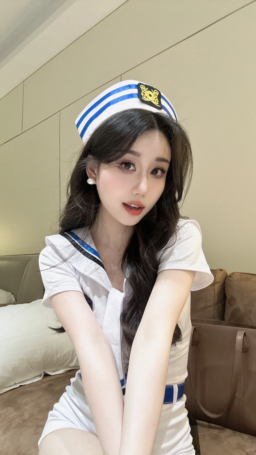 我的自拍分享 卷发 少女感 韩系女高妆 大波浪卷发 深漂 水手服 socrazy 甜妹 每日穿搭