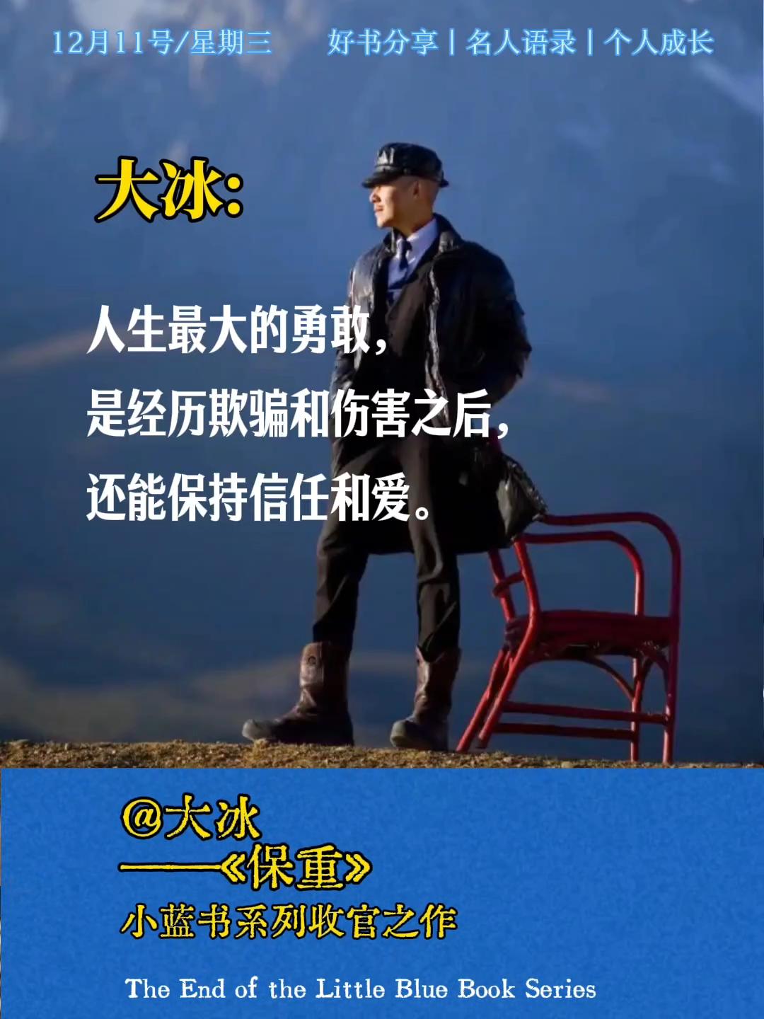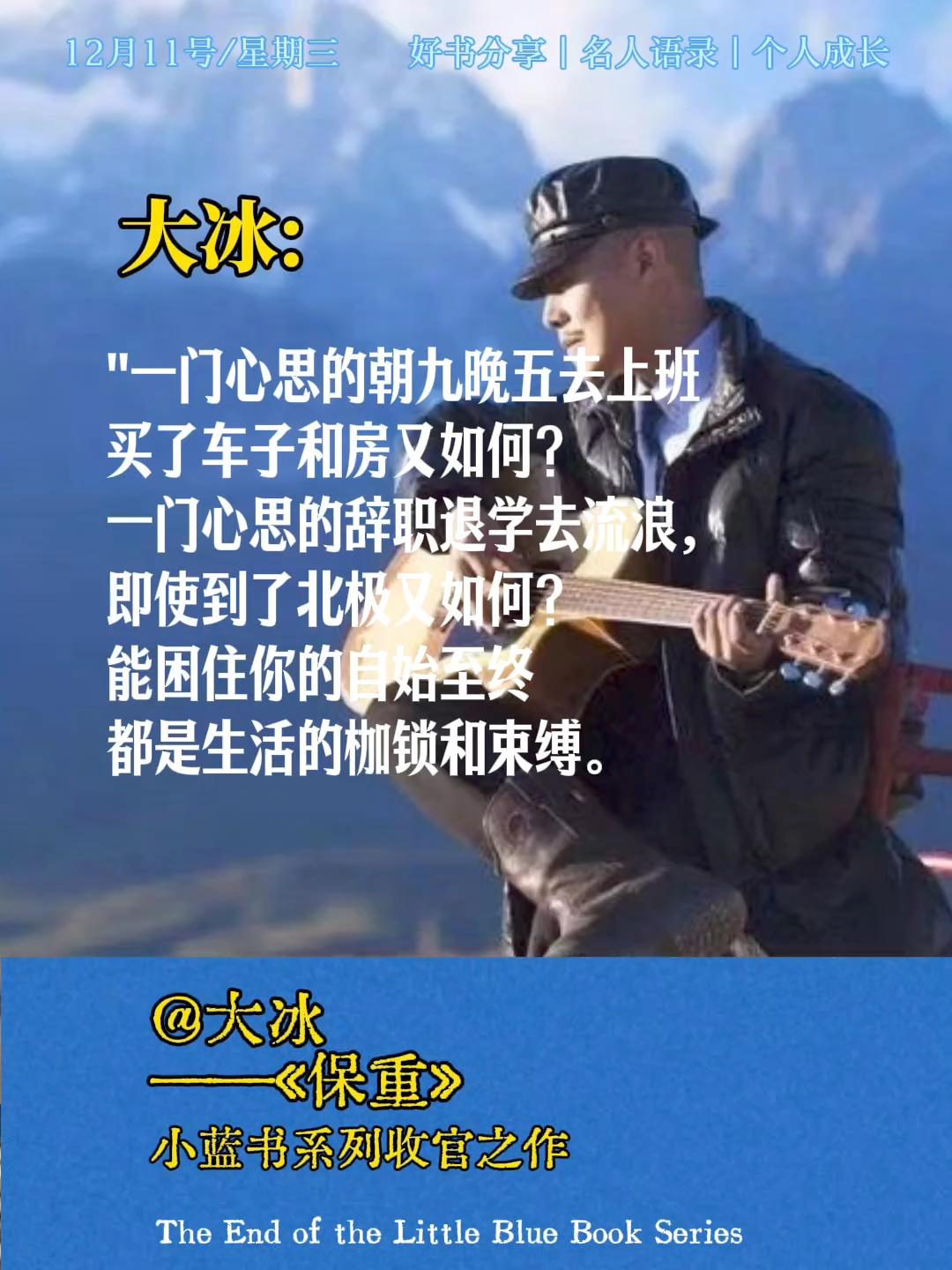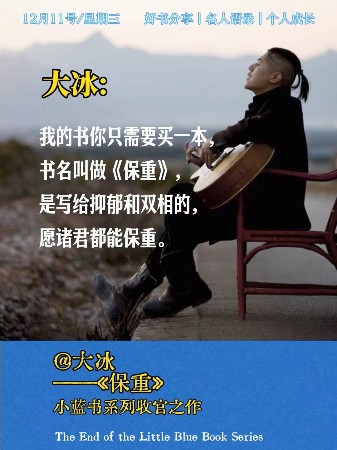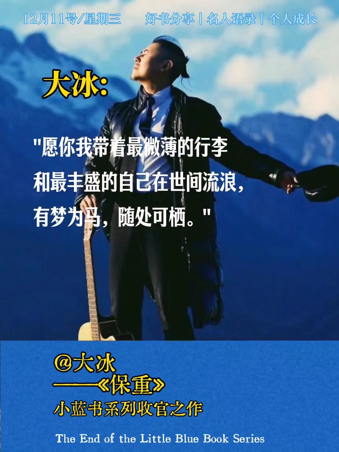 如果你最近不开心,一定要读读大冰的书!这本《保重》是小蓝书系列的收官之...