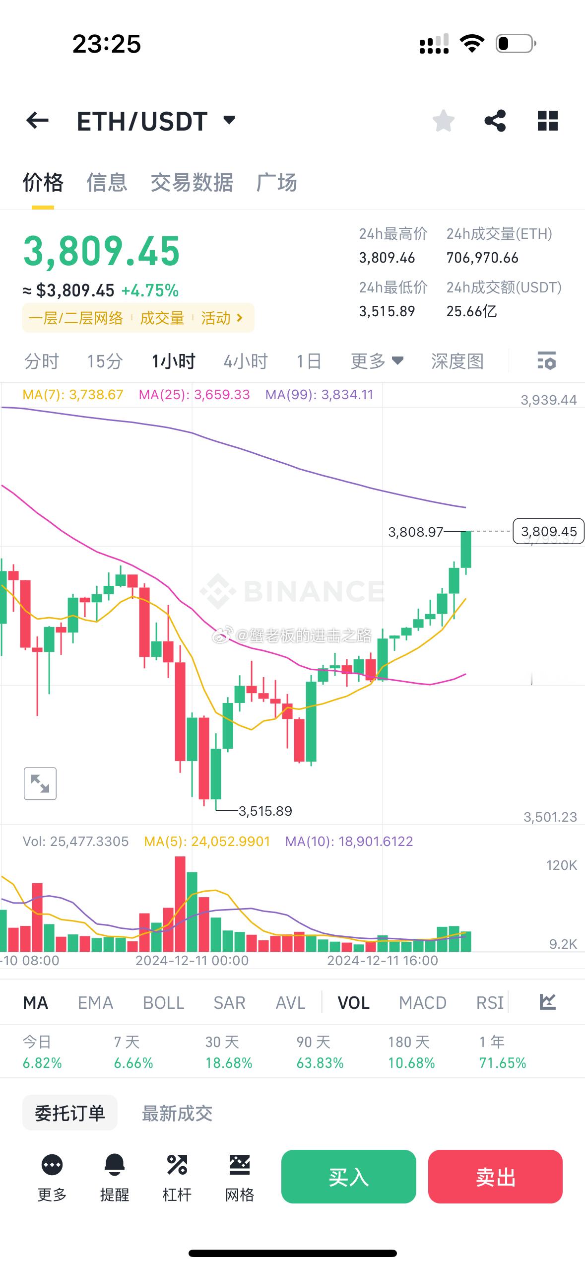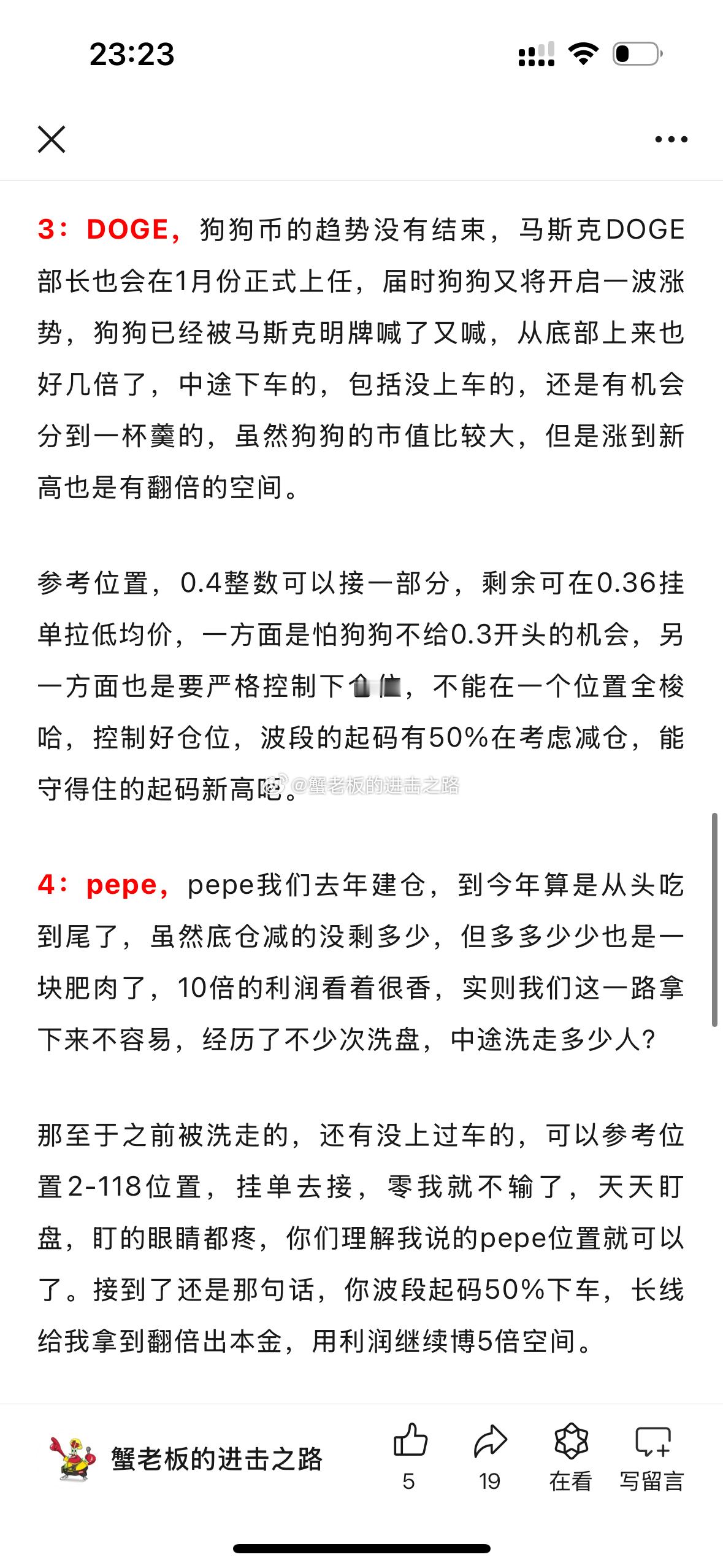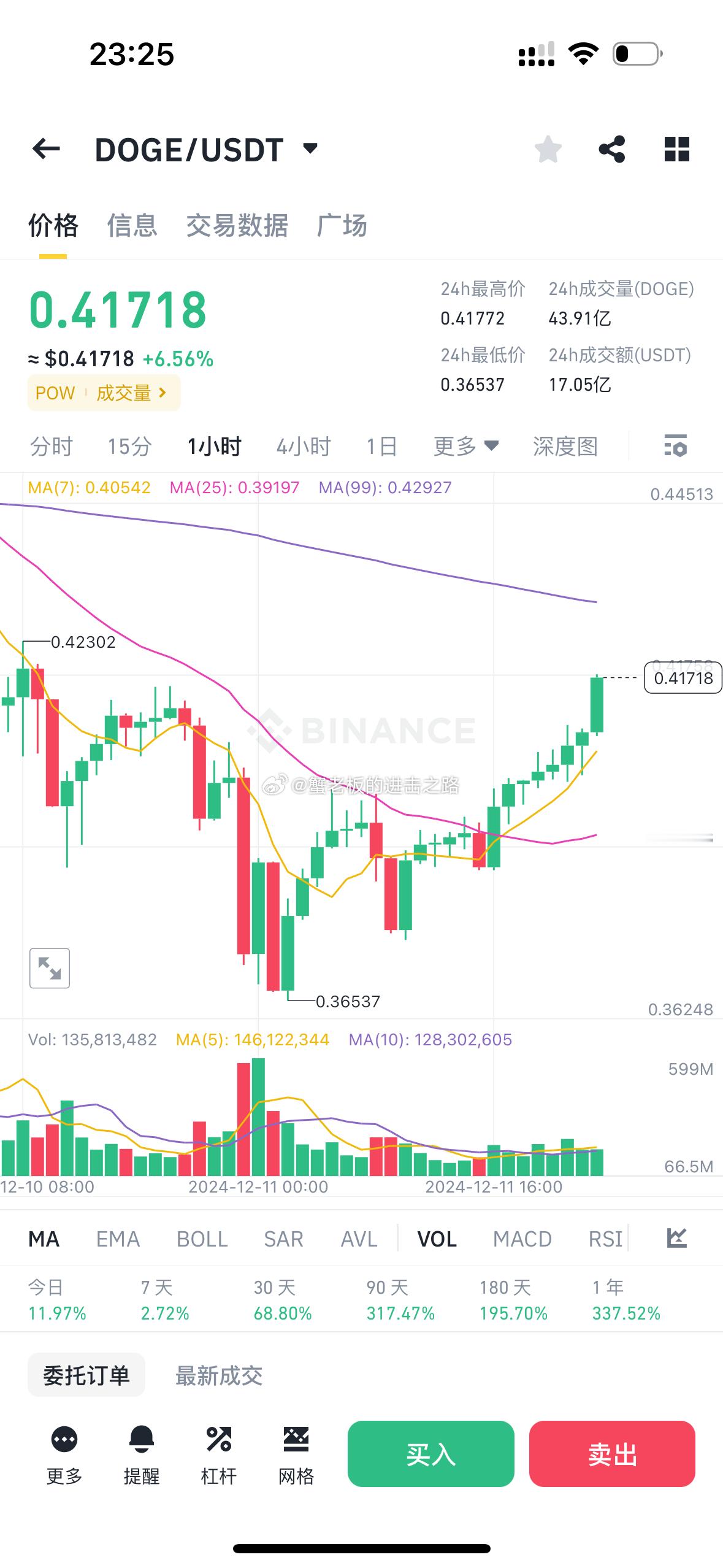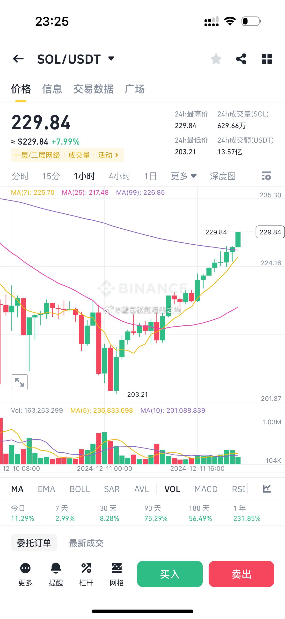 知行合一!比特币重回10万!昨日文章,包括铁粉裙,强调之前强势的山寨没上过车的,完全可以按照挂单位置操作,sol200-205这两日都能接到!包括以太坊3550-3500头仓都到了,doge0.4的头仓,防守0.36没到,说的很清楚0.4头仓就是怕狗狗不给0.3开头机会,严格执行交易节奏,你将不会错过牛市行情!接到头仓的点个赞吧[太开心][心]