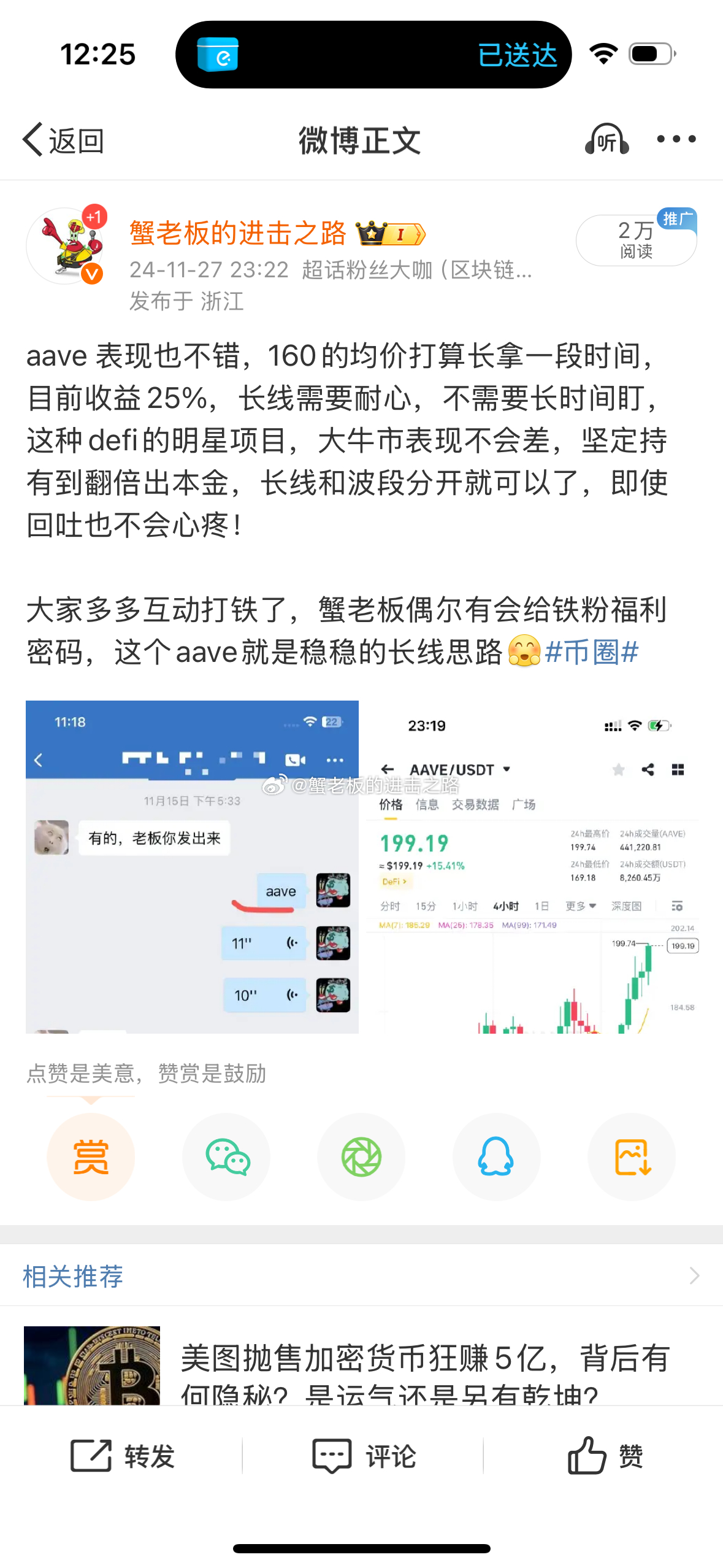 aave 160的仓位也翻倍了,我们的长线标目前又完成一个零成本标,就是就是要多做一些零成本,遇到回调不慌,跟着节奏走不会错,你只需要执行策略,剩余的交给时间,出来的本金也会让布局新的热点,让我们一起迎接疯狂的牛市[心]
