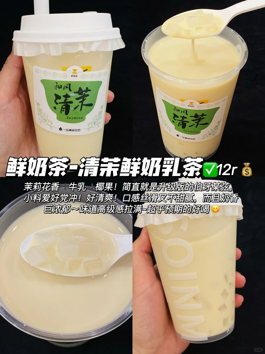 茉莉花香➕牛乳➕椰果!简直就是升级版的伯牙某弦,小料爱好党冲!好清爽!口感丝滑不甜腻,奶香浓郁~好好喝