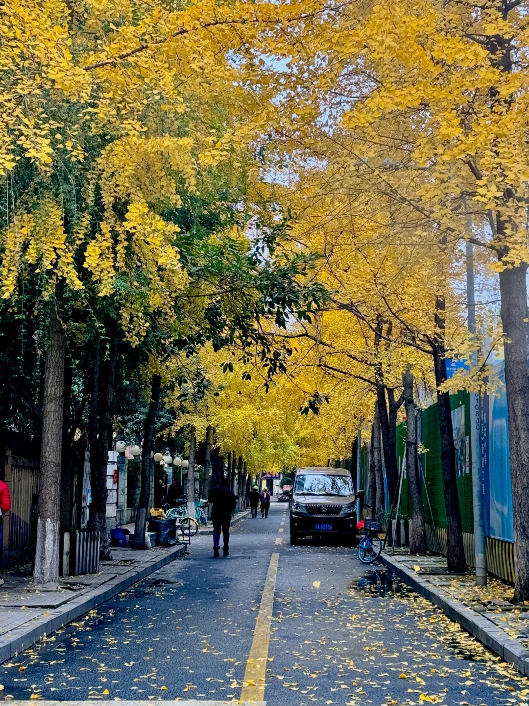 3️⃣锦绣巷今年的银杏没有前两年好,一条小路一半停了车