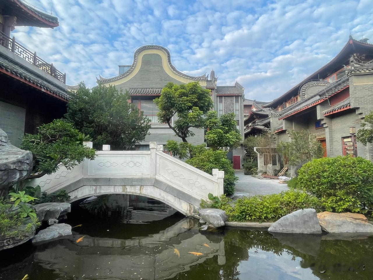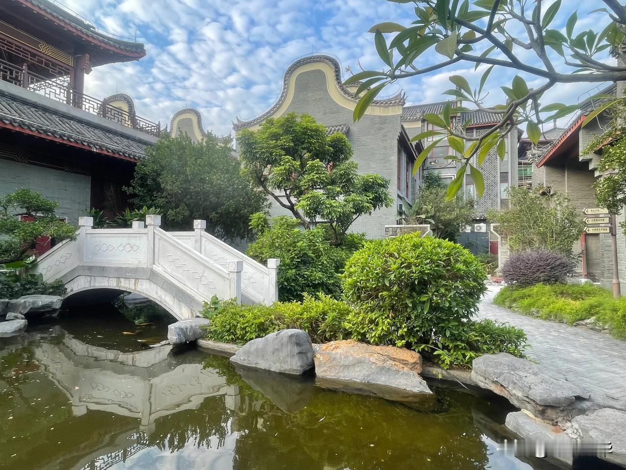 在中山市的某个清晨,难得有时间自己与自己和云和鱼在一起。 清晨鸟儿似乎都还没有醒来,我独自一人来到中山市的大师园,没有想到这里居然修筑的古色古香。在树木的掩映之中,有一池湖水,湖中鱼儿自由自在地游动着。湖畔的冬桂、茉莉、鸡蛋花、三角梅……自由的开放着,各种花的香味悄悄地传过来,我不禁放慢了脚步。 无论站在哪一个角度,都能看到小桥流水,看到鱼儿自由欢畅,看到蓝天白云倒映在水中,看到池畔那些盛开的花。 于是在清晨的几缕霞光中,我静静地坐在湖畔,几只鱼儿缓缓地向我游来,它们“往来翕忽,似与游者相乐”。池塘虽然不大,但对于它们来说已经足矣可以畅游整个冬季了。 这一站中山