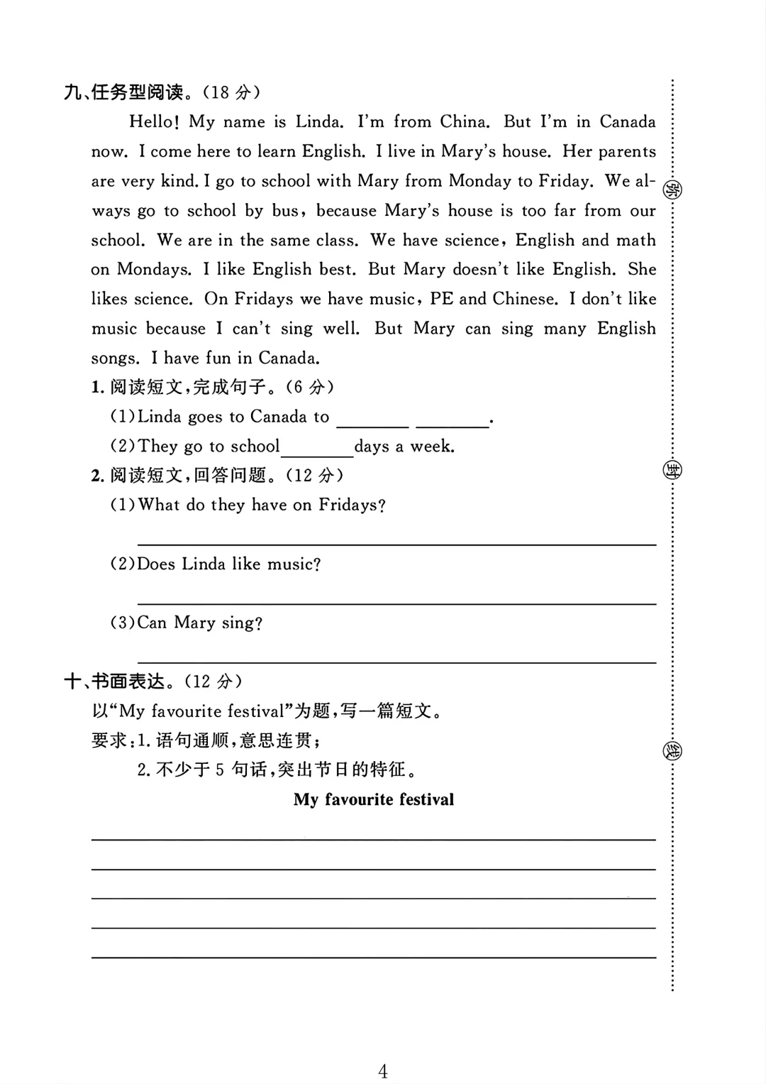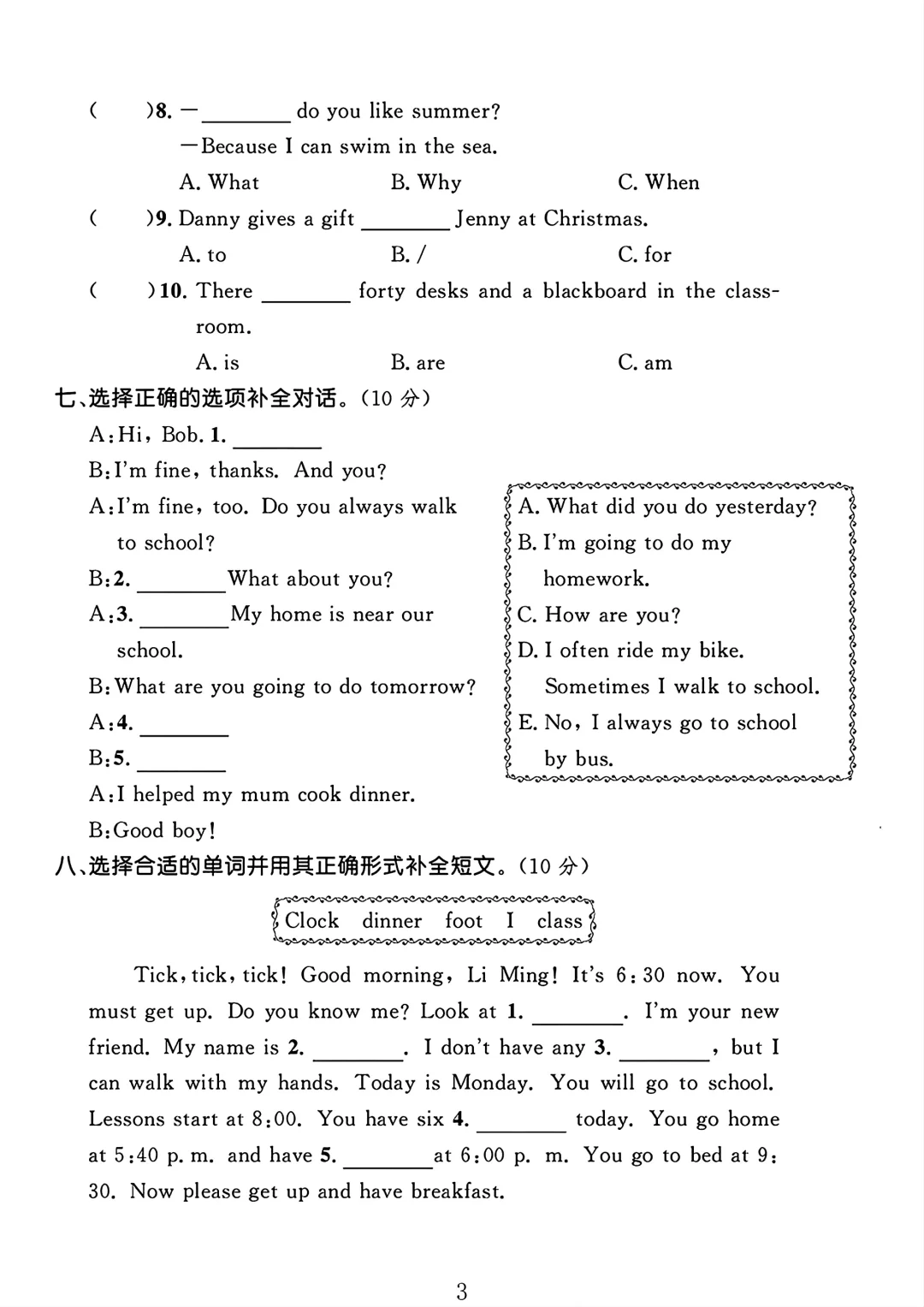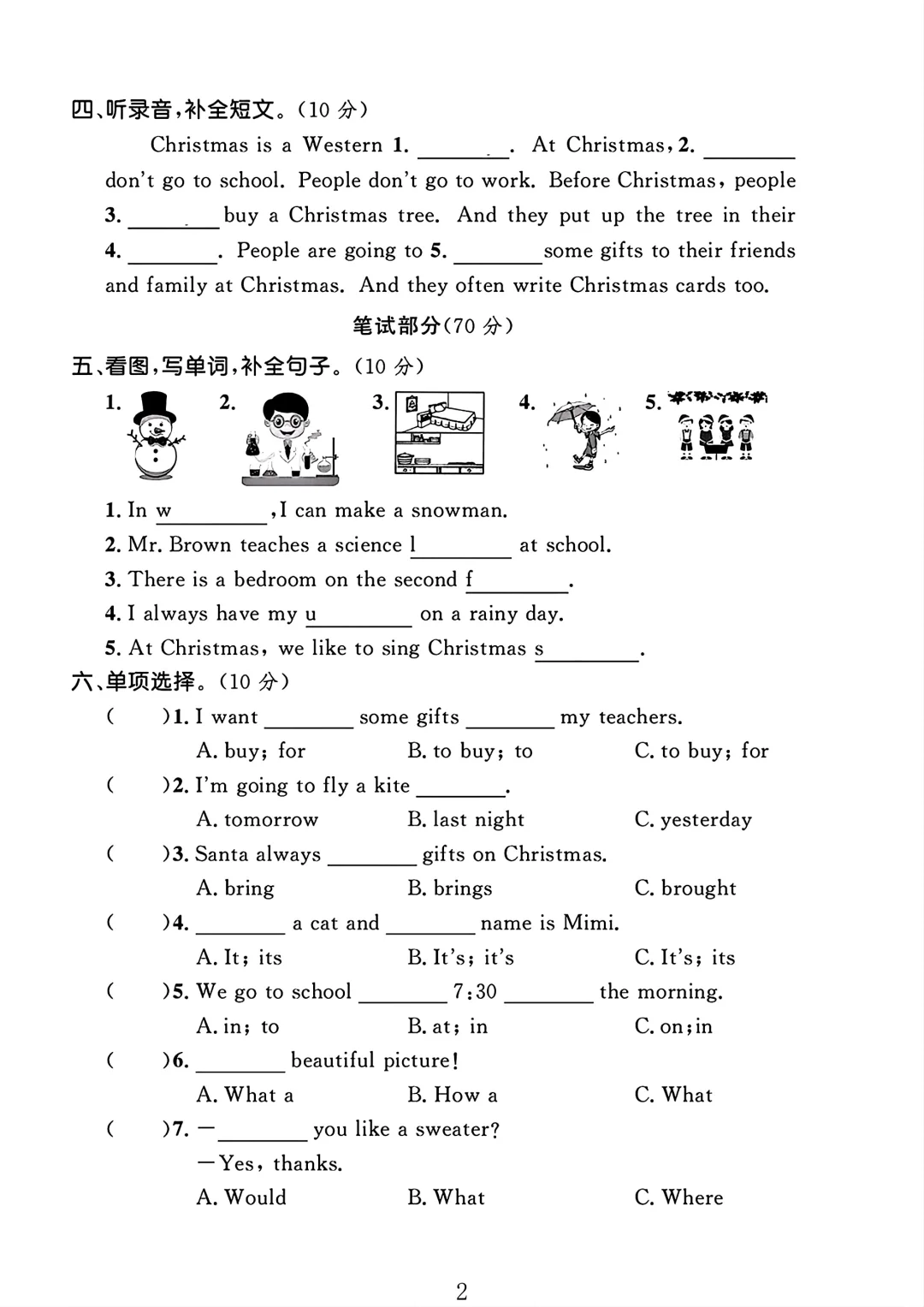 冀教版小学英语 六年级上册英语 期末 试卷 期末考试 电子版可打印