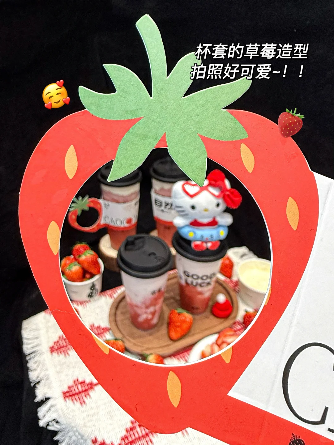 粉粉嫩嫩的颜值好高!每一口都是治愈的味道!还有炒鸡可爱的草莓杯套!!瞬间萌化了。。。