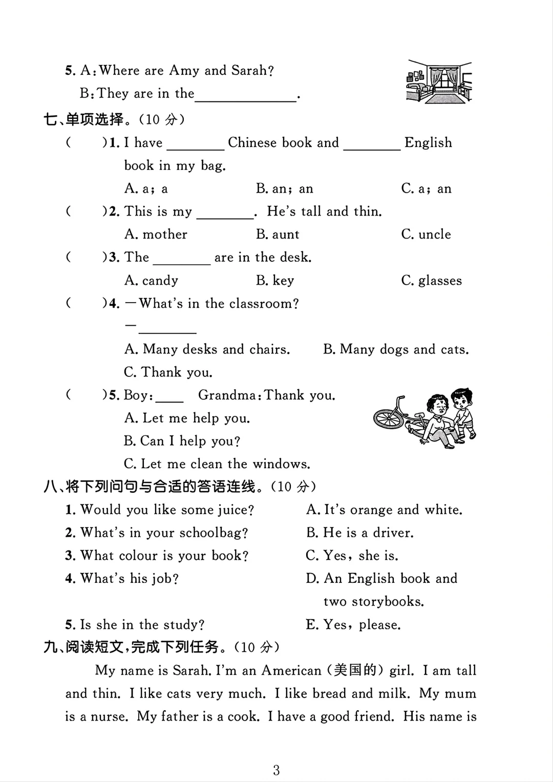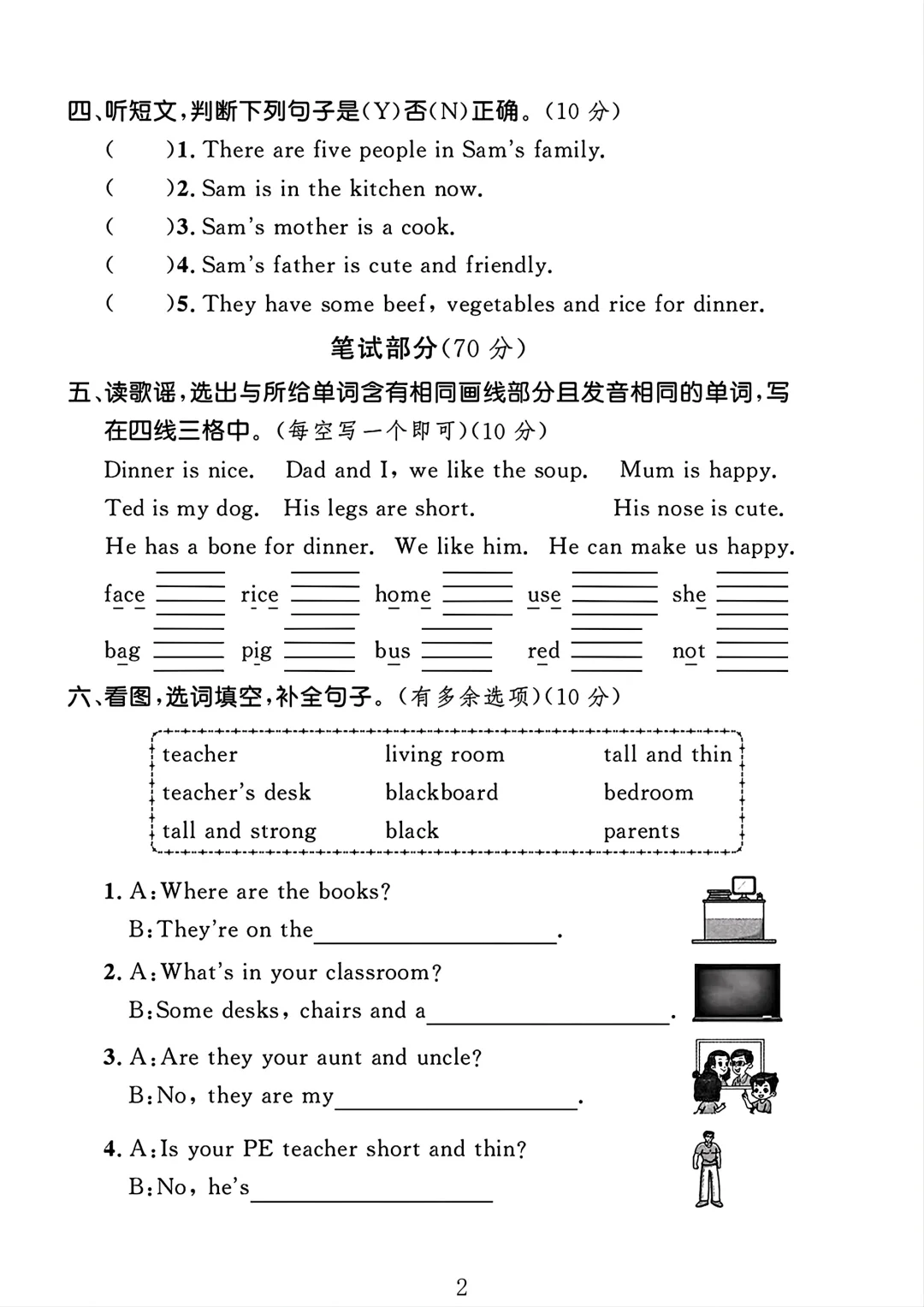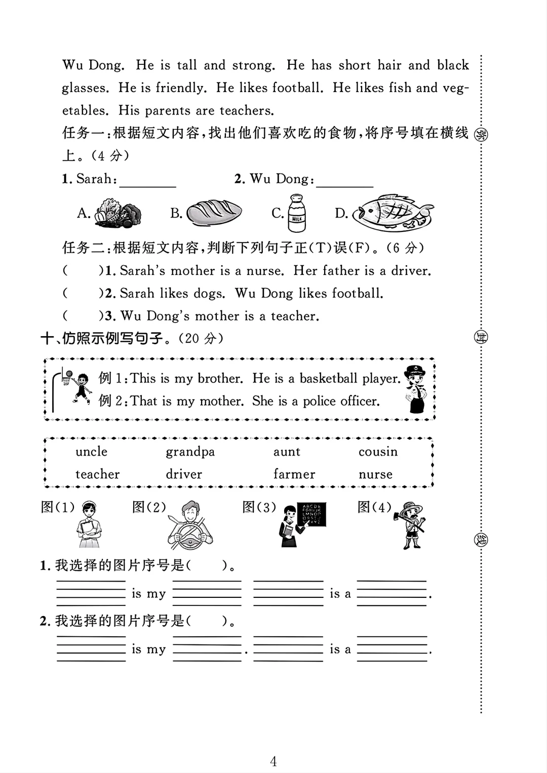人教版 四年级上册英语 期末考试 期末 试卷 电子版可打印